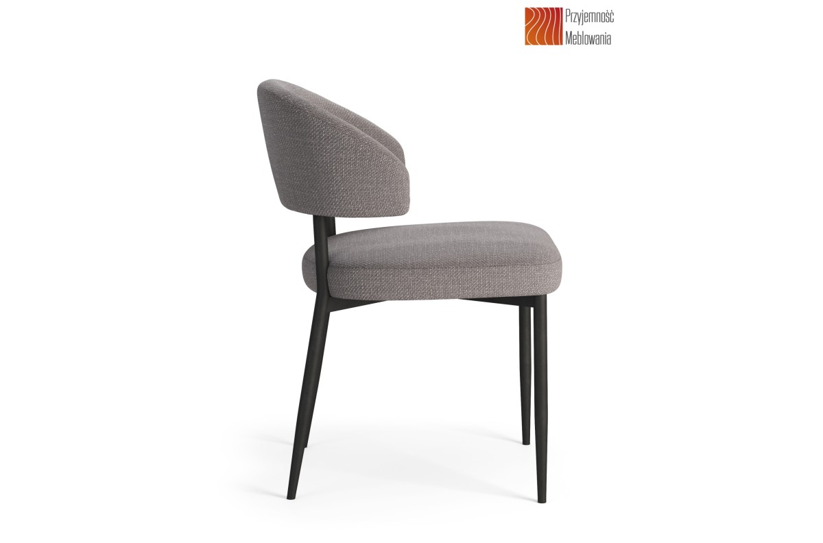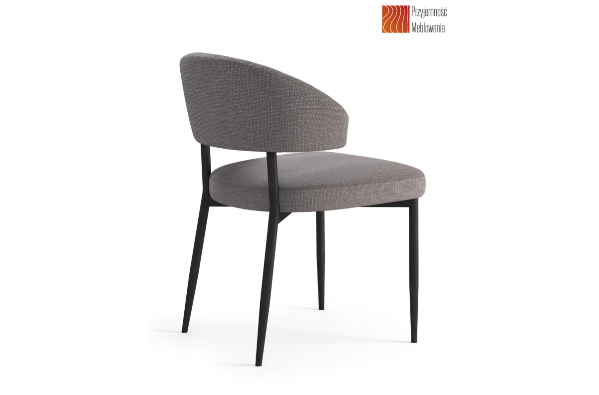 The IRIS upholstered chair is an elegant and modern design that will fit perfectly into a variety of interiors. Its distinctive feature is the carefully contoured seat and backrest, filled with upholstery foam, providing exceptional comfort. The slender black frame adds a touch of lightness and is crafted from powder-coated steel, ensuring durability and resistance to damage.