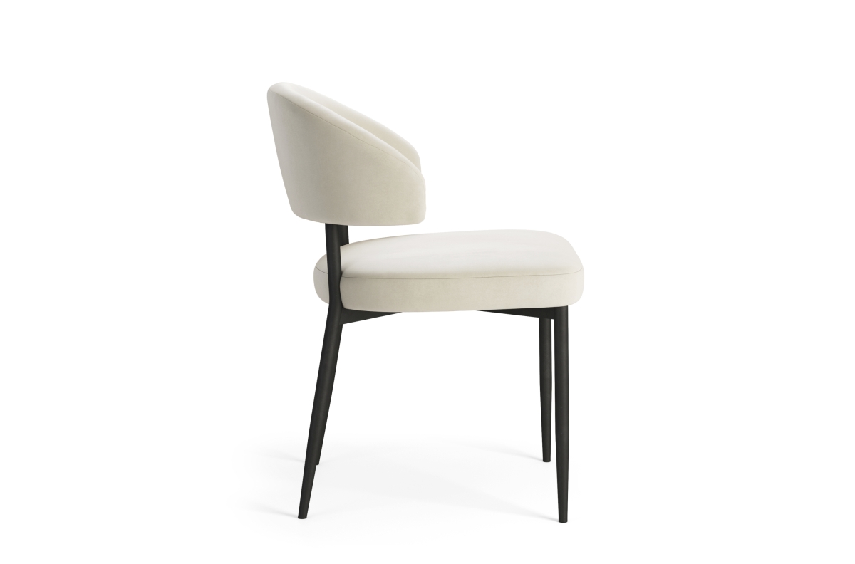 The IRIS upholstered chair is an elegant and modern design that will fit perfectly into a variety of interiors. Its distinctive feature is the carefully contoured seat and backrest, filled with upholstery foam, providing exceptional comfort. The slender black frame adds a touch of lightness and is crafted from powder-coated steel, ensuring durability and resistance to damage.