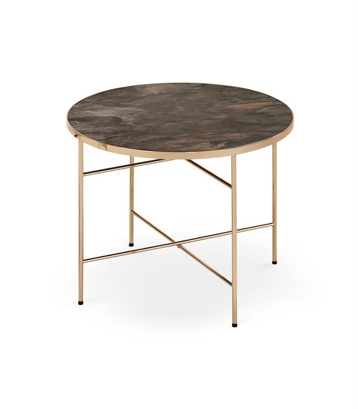 dimensions: O60/45 cm, material: glass / chrome steel, color: top – dark marble, frame – champagne