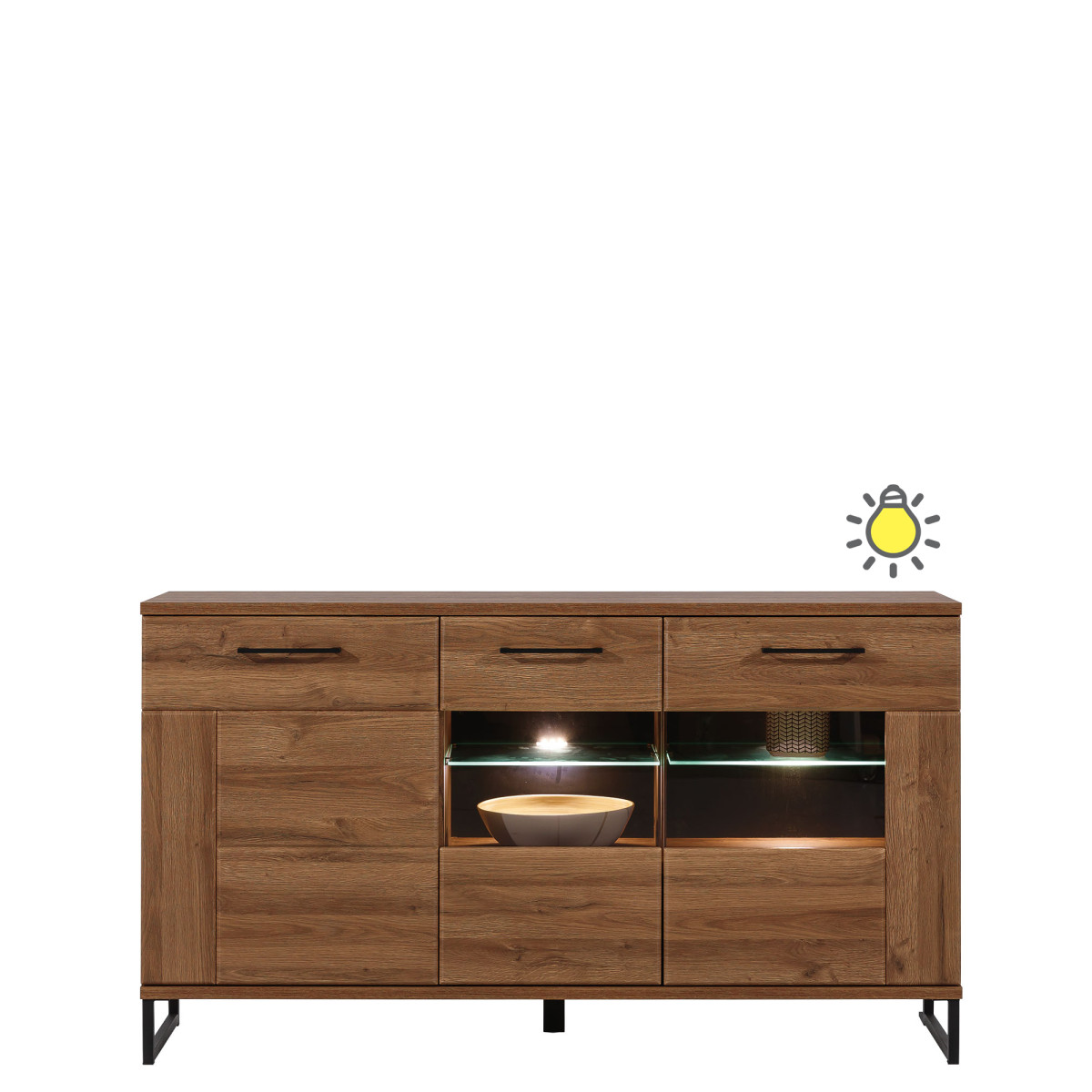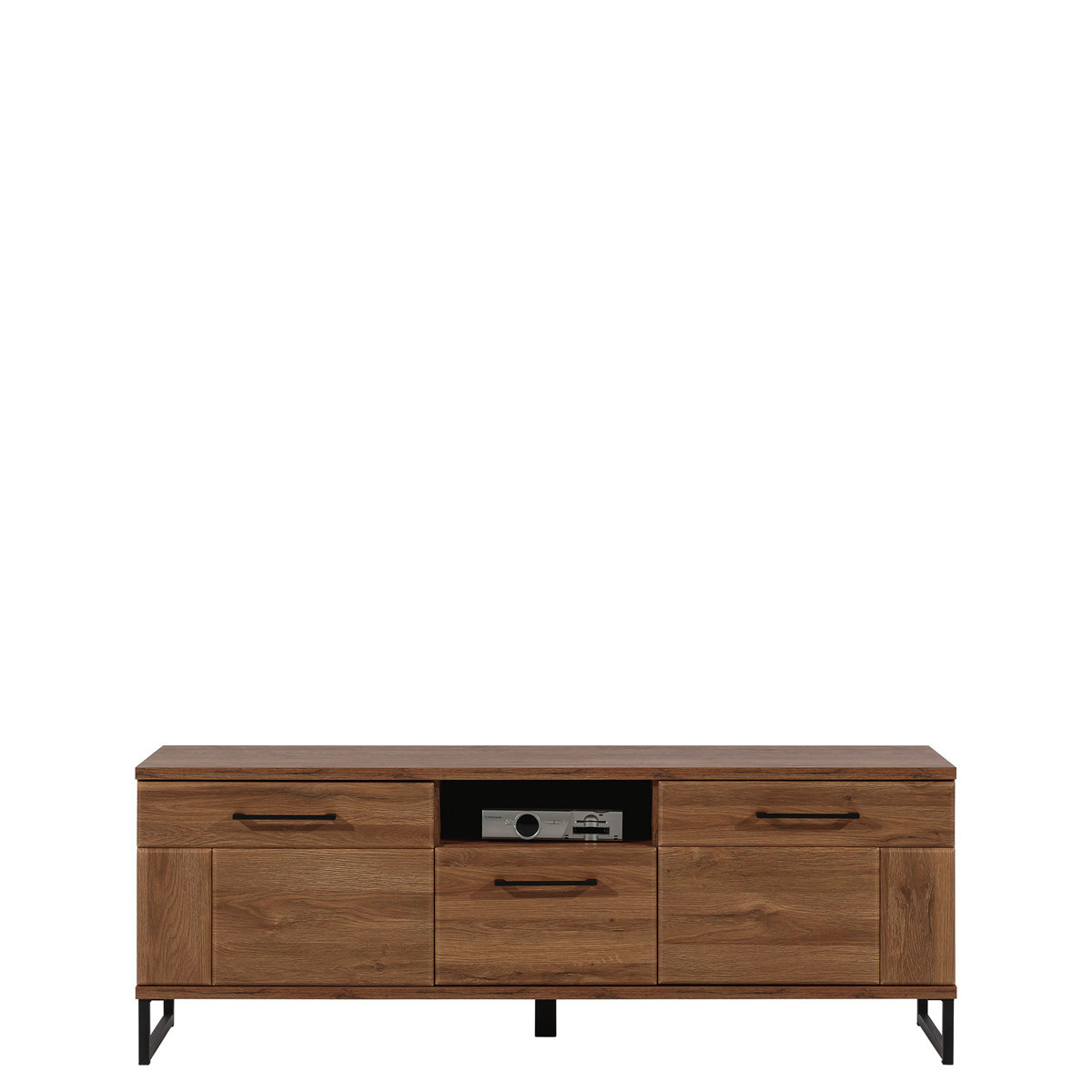 Width 150.5 cm Depth 40 cm Height 54 cm Product weight with packaging 39.15 kg Manufacturer’s code / symbol IV01 Collection name IVO Name in the b2b system IVO IV-1 april oak RTV set Number of product packages 4 Style Modern Equipment Assembly instructions / assembly accessories Assembly For self-assembly Body color April Oak Body material / type / thickness 16 mm furniture board Top body material / type / thickness 22 mm furniture board Bottom body material / type / thickness 22 mm furniture board Back wall material / type / thickness 2.5 mm HDF furniture board Back wall – visible part color Black Front color April Oak Front material / type / thickness 18 mm MDF furniture board Front hinge ⌀ 35 mm adjustable in three planes Front handle / type / color Metal / Black Hole for RTV cables ⌀ 50 mm Soft-close door system As standard Full extension drawer guides Leg / type / color Non-adjustable / metal / black Leg height 120 mm Additional leg / type / color Adjustable middle / plastic / Black Foot / finish / color Non-adjustable / Furniture glide / plastic / Black Number of doors 2 Number of drawers 1 Number of open niches 1 Number of closed niches 2