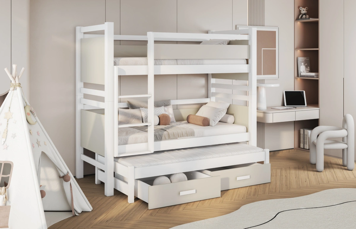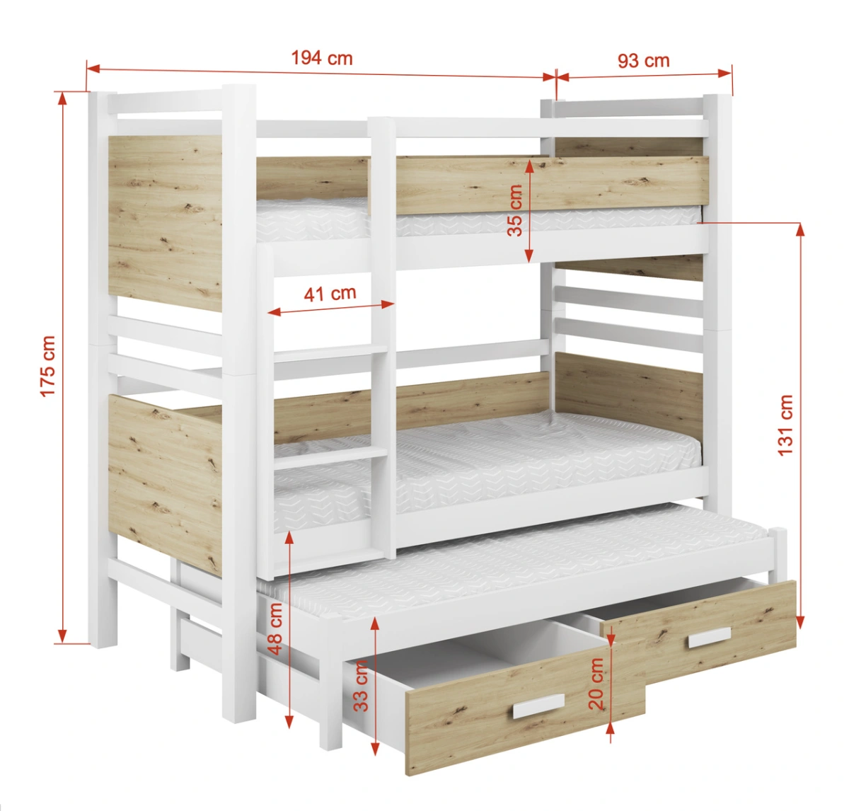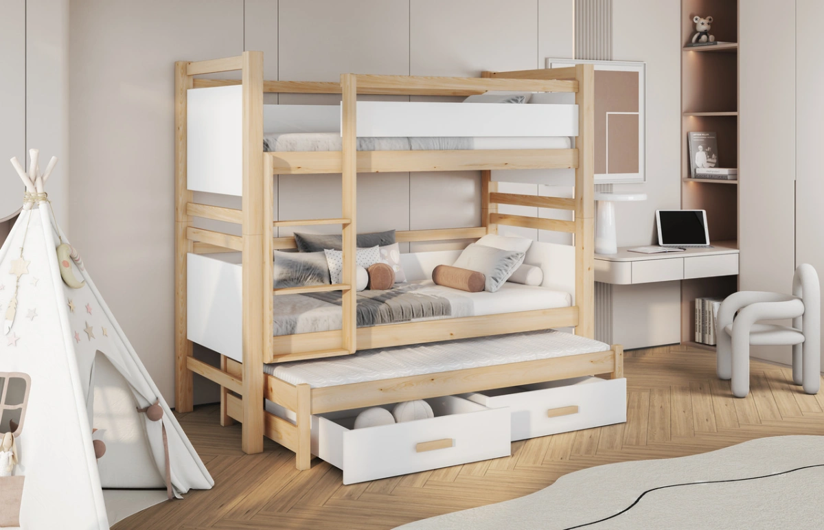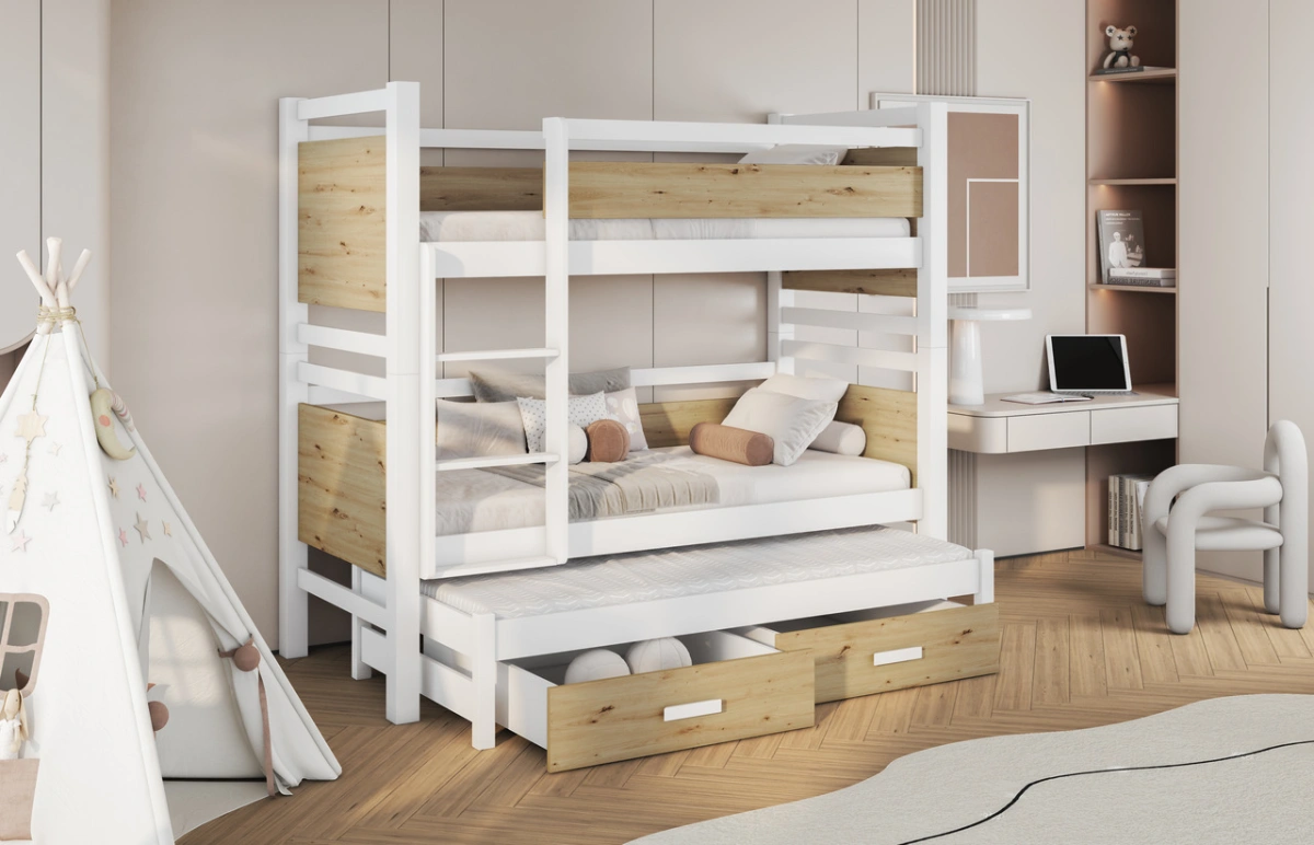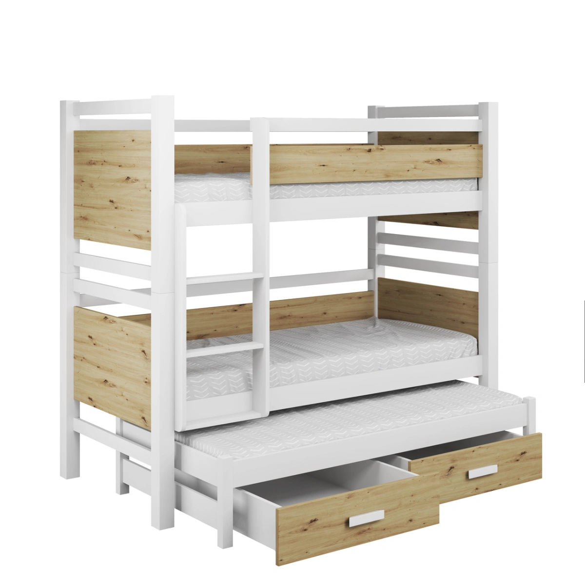 JANIS III trivietė dviaukštė lova su stalčiais 90×200 cm
