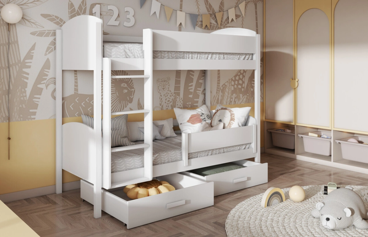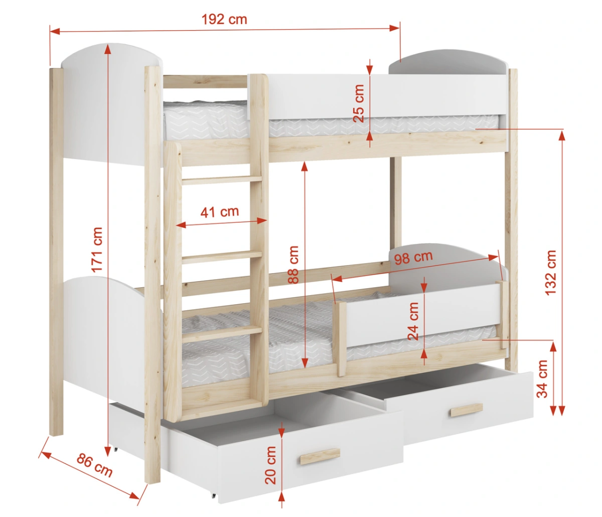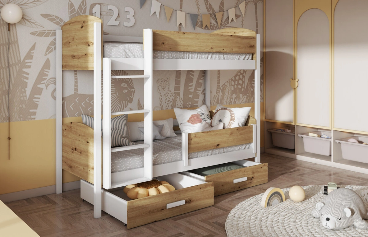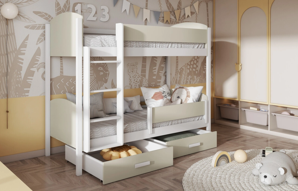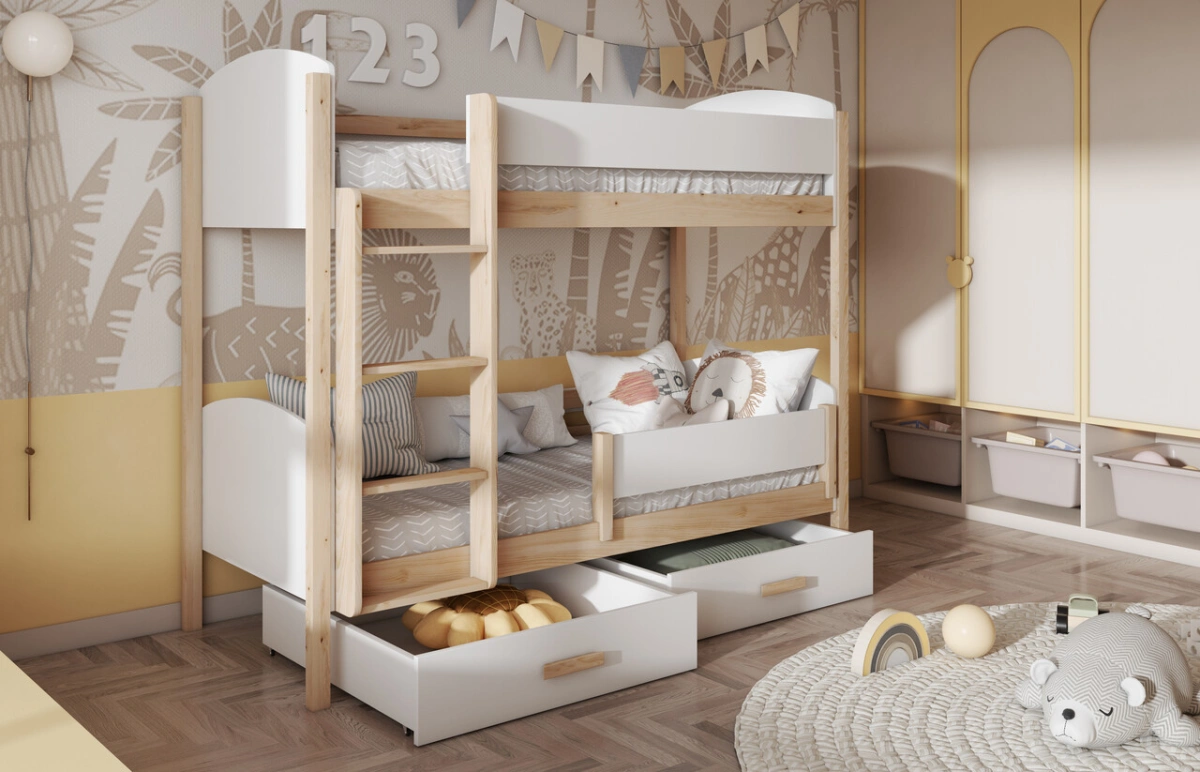JORDAN dviaukštė lova su stalčiais 90×200 cm