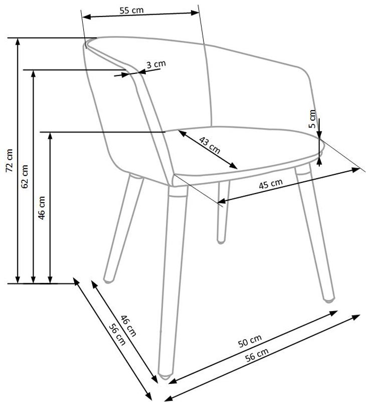 dimensions: 56/56/72/46 cm, material: cloth / solid wood, color: dark grey