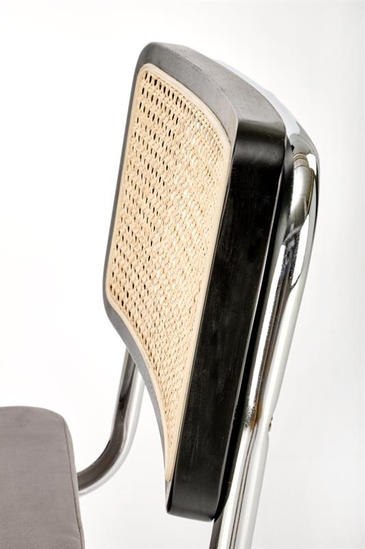 dimensions: 53/60/84/49 cm, material: solid rubber wood / naural rattan / velvet cloth / chrome steel, colors: black / grey – BLUVEL 14