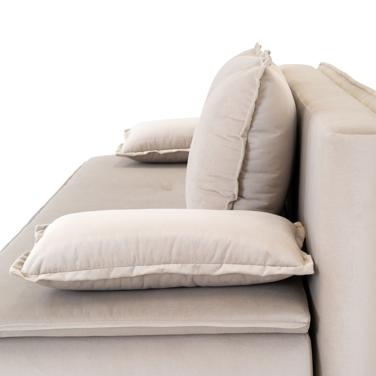 Width 212 cm Depth 106 cm Height 100 cm Sleeping area 206×160 cm Color Beige Fabric name paros 2 Foldable YES Adjustable headrests No Number of product packages 2 Style Modern Equipment Assembly instructions / assembly accessories Assembly For self-assembly Leg / design / color Plastic / black Leg height 13 cm Bedding container YES