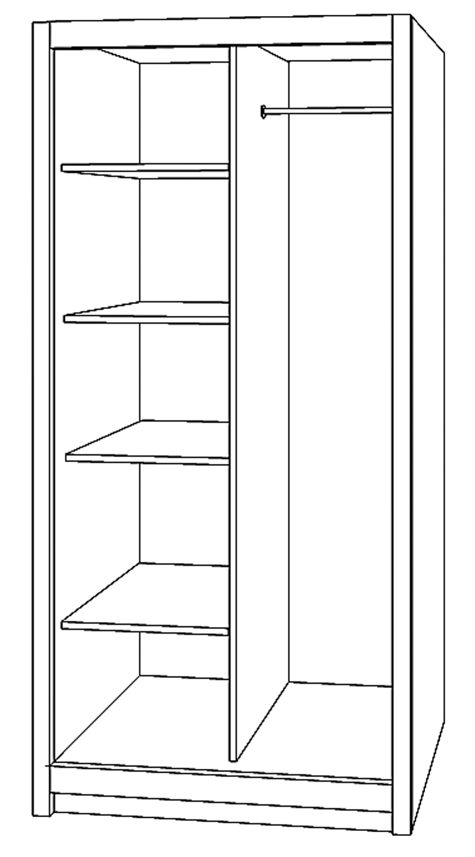 The KASIA I A two-door wardrobe with a sliding door system is solidly constructed, functional, and elegant, making everyday use easier. Perfect for bedrooms, hallways, and living rooms. The practical interior is divided into shelves and hangers.