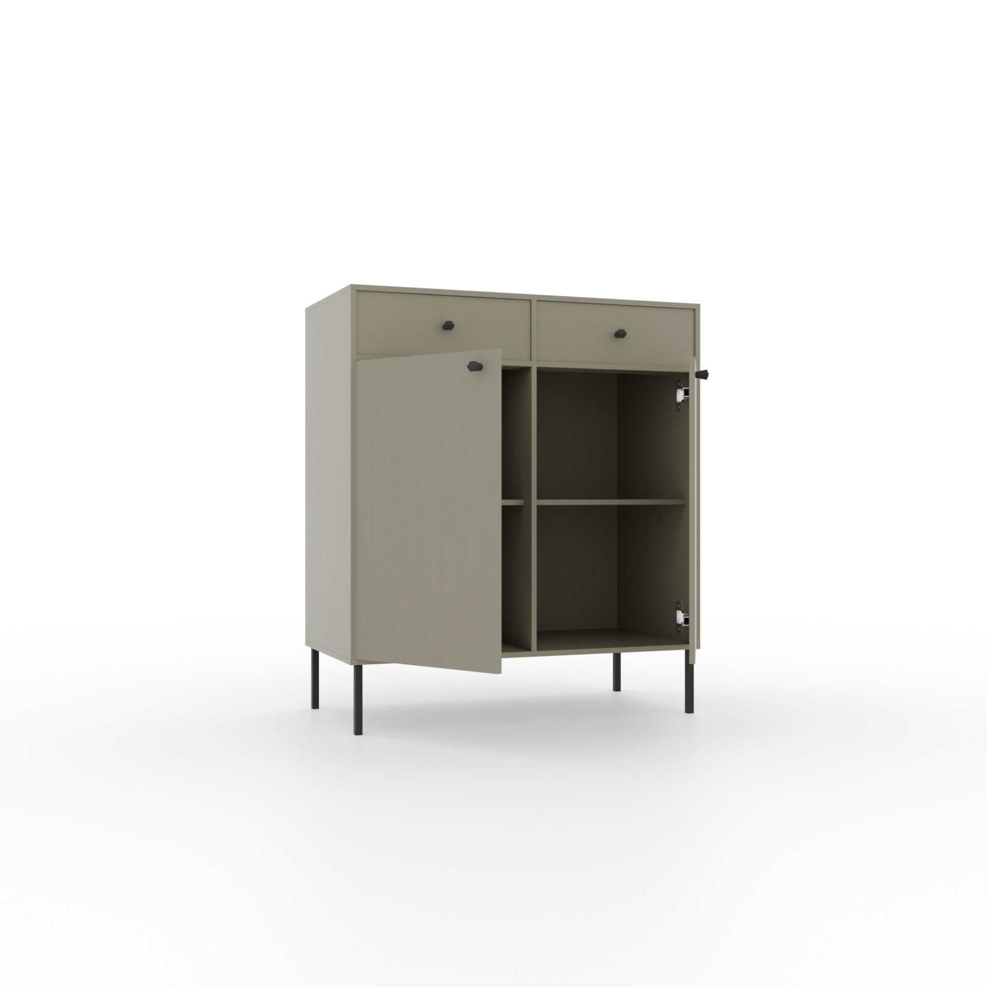 The Tili System Chest of Drawers is a modern piece of furniture that blends seamlessly into a variety of interiors thanks to its well-thought-out color palette and elegant design. Available in three color options: black, sand beige, and eucalyptus, the chest of drawers offers a harmonious blend of functionality and aesthetics. Each color has been carefully designed to emphasize the unique character of the interior. Black gives the chest of drawers a refined, modern look, ideal for minimalist and elegant spaces. Sand beige introduces warmth and subtlety, perfectly complementing light, natural décor elements. Eucalyptus, on the other hand, is a shade inspired by nature, bringing freshness and lightness to the interior, perfect for both modern and more classic designs.