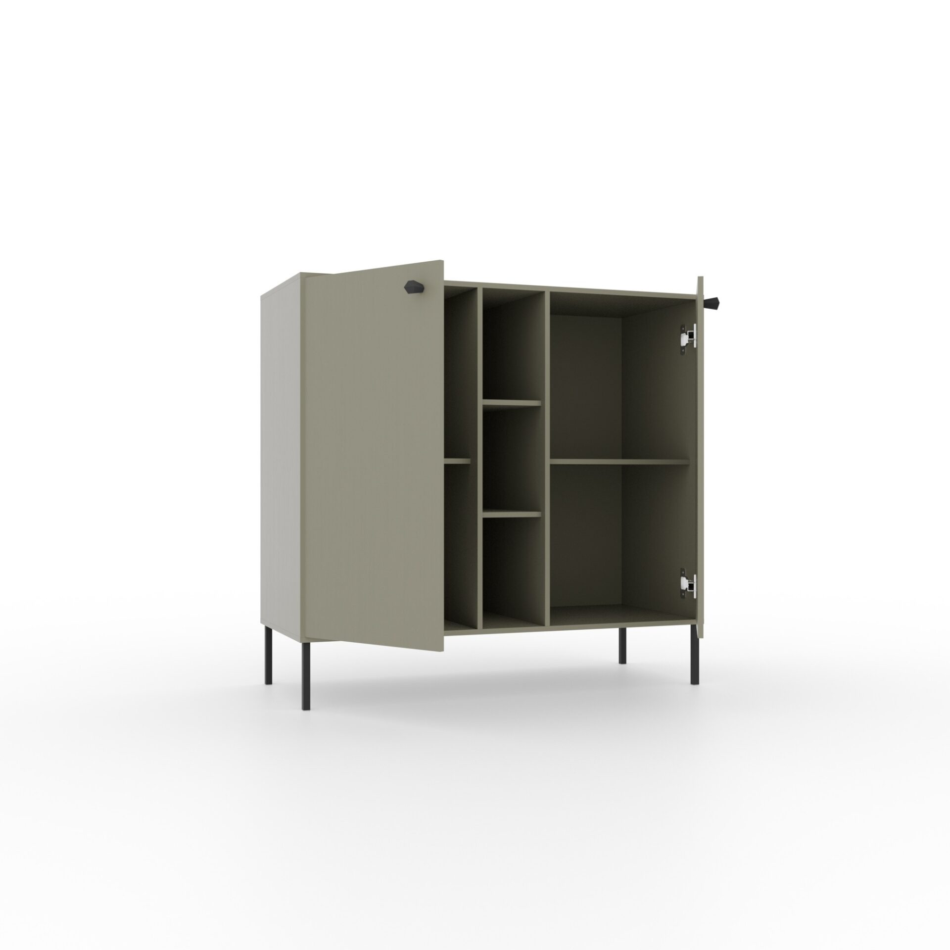 The Tili System Chest of Drawers is a modern piece of furniture that blends seamlessly into a variety of interiors thanks to its well-thought-out color palette and elegant design. Available in three color options: black, sand beige, and eucalyptus, the chest of drawers offers a harmonious blend of functionality and aesthetics. Each color has been carefully designed to emphasize the unique character of the interior. Black gives the chest of drawers a refined, modern look, ideal for minimalist and elegant spaces. Sand beige introduces warmth and subtlety, perfectly complementing light, natural décor elements. Eucalyptus, on the other hand, is a shade inspired by nature, bringing freshness and lightness to the interior, perfect for both modern and more classic designs.