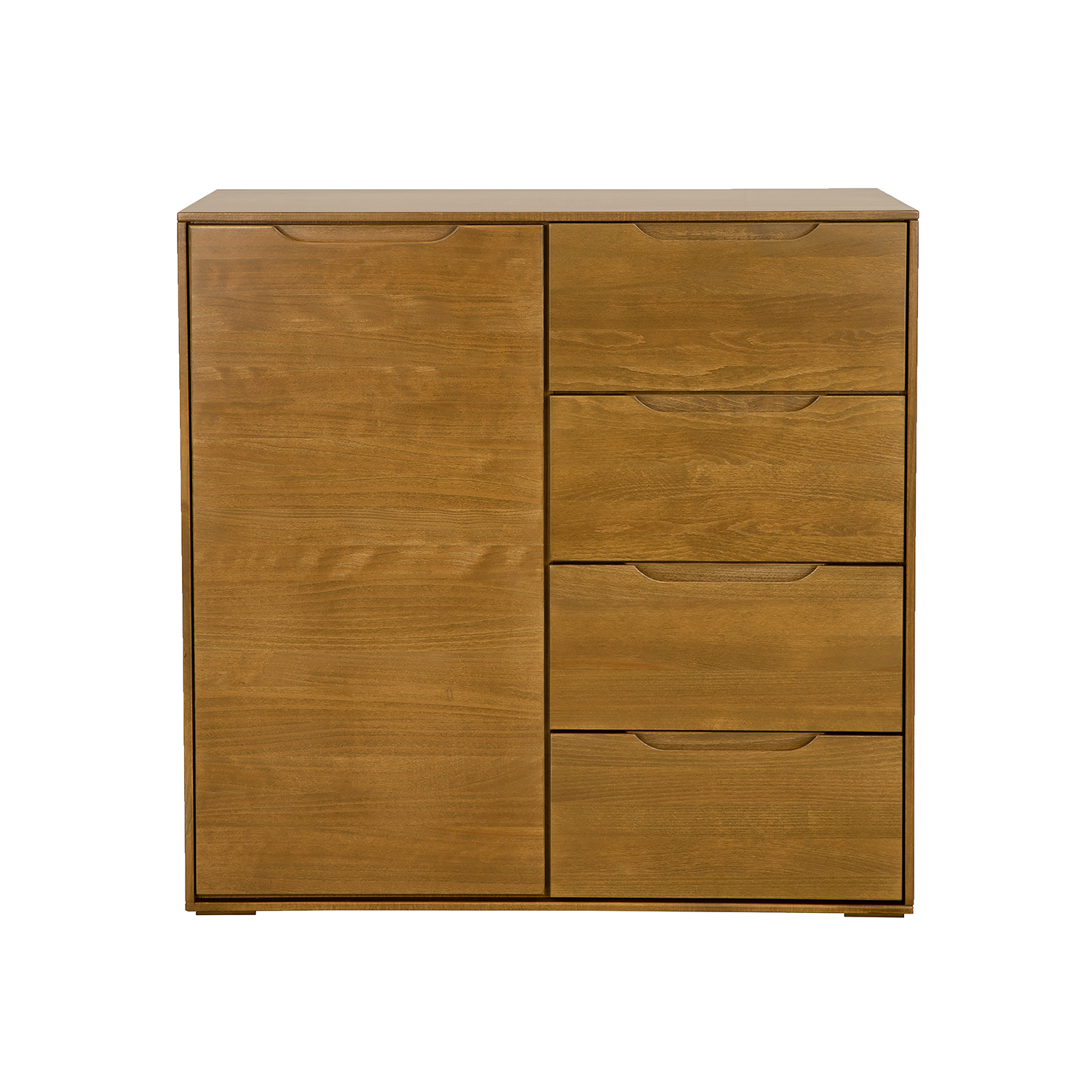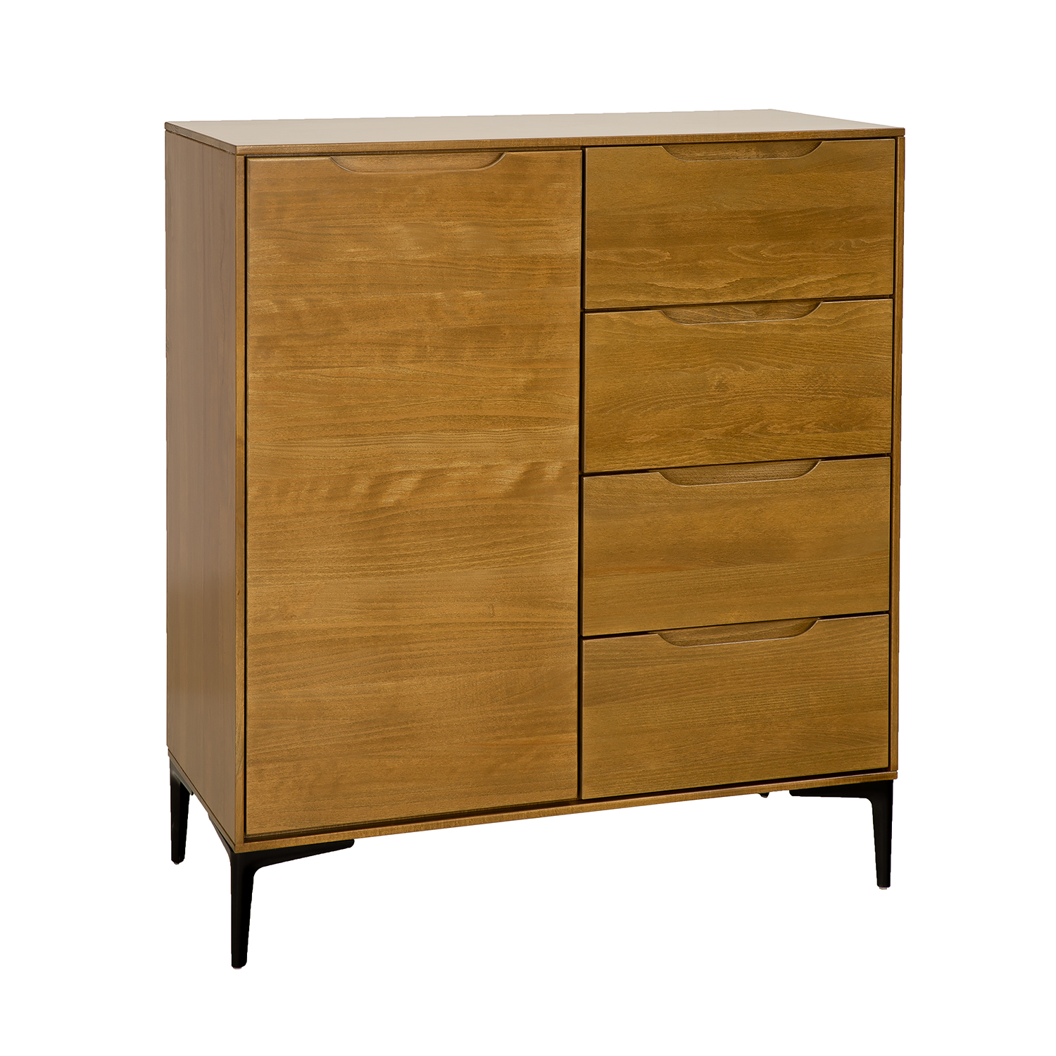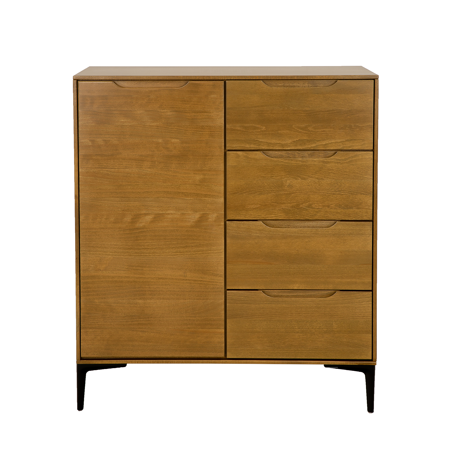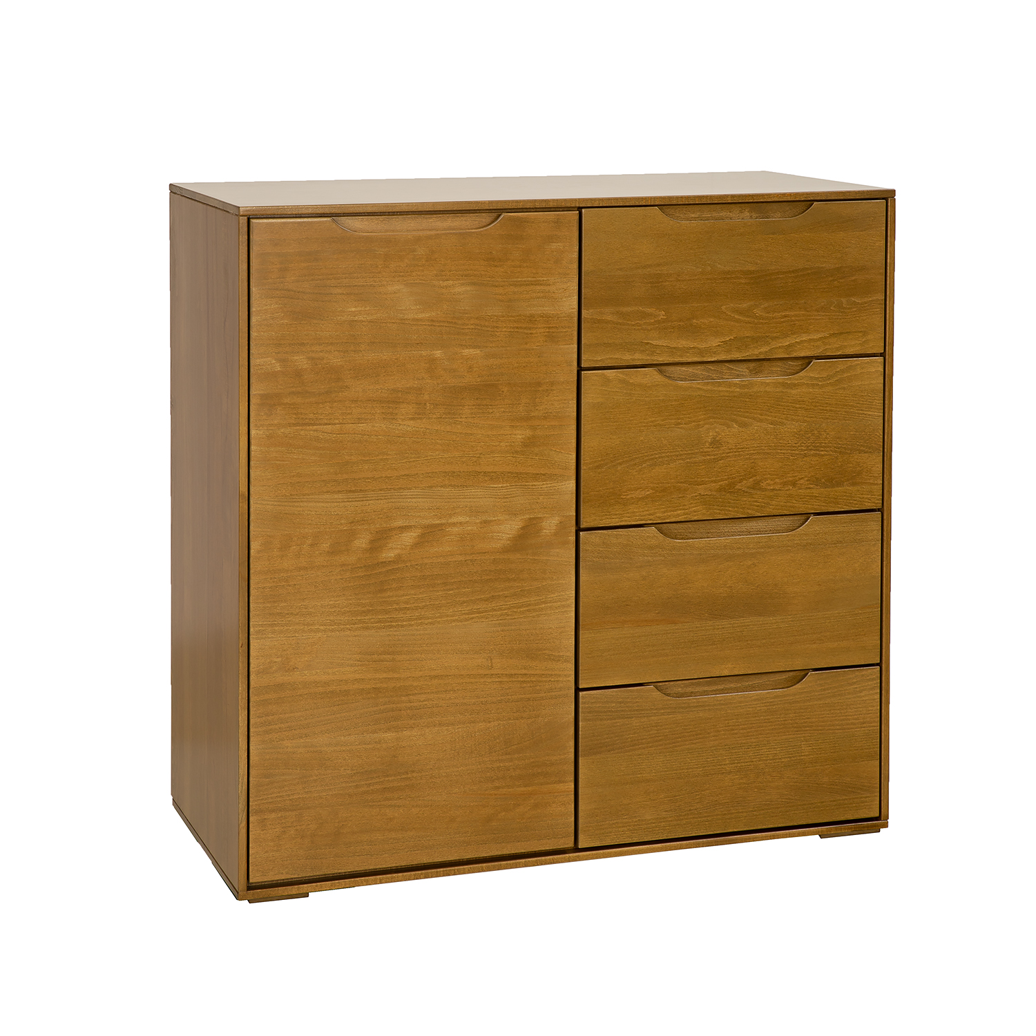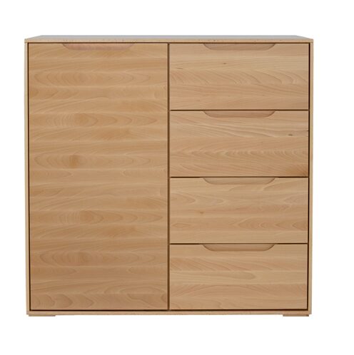 The beech KD426 chest of drawers from the Modern collection was created with lovers of modern minimalism in mind. Despite its simple form, it captivates and attracts attention from the moment you walk in. Solid, unadorned fronts are complemented by subtle, carved-in wood handles that create an opening and closing system. Equipped with a spacious cabinet and functional drawers, it’s perfect for storing numerous home accessories. Another advantage is the large beech top, which will beautifully display family heirlooms or photos. The chest of drawers rests on small wooden legs. Optional 10 cm high aluminum legs (NG002) and 15 cm high metal legs (NG003) are available. This allows you to easily completely change the character and style of the furniture.