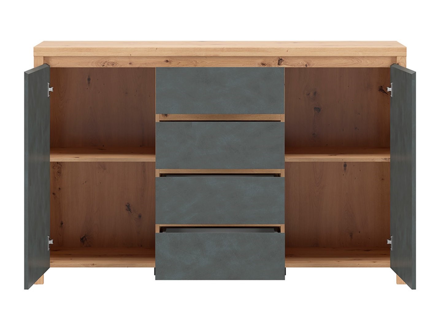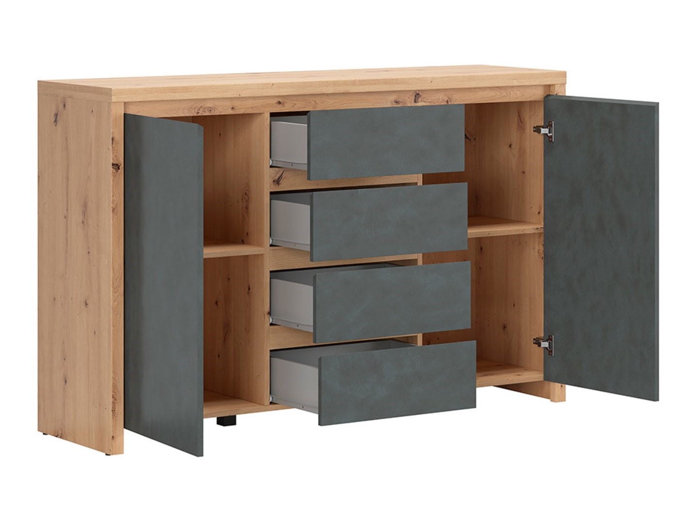 Product code S566-KOM2D4S-DASN/MTA Symbol ZM EAN Width 143 cm Depth 40 cm Height 91 cm Collection Larios Color artisan oak/matera Shade light wood Style modern Material laminate Number of doors 2-door Number of drawers 4-drawers Handle without handles Manufacturer Black Red White Type of furniture Chests of drawers VAT 23% EAN 5906123813433