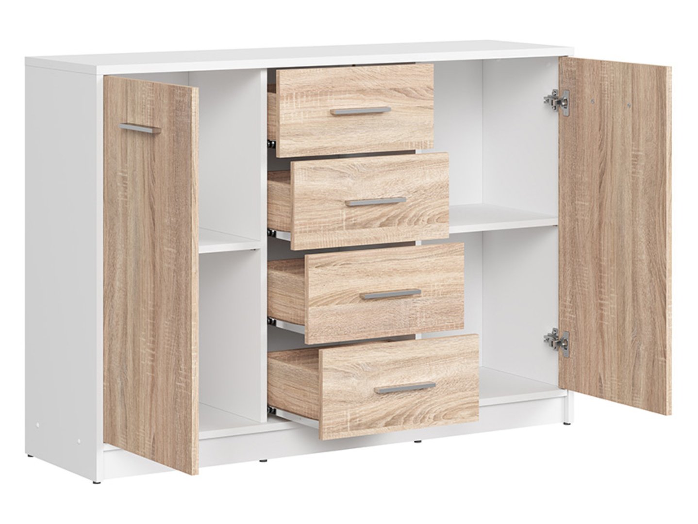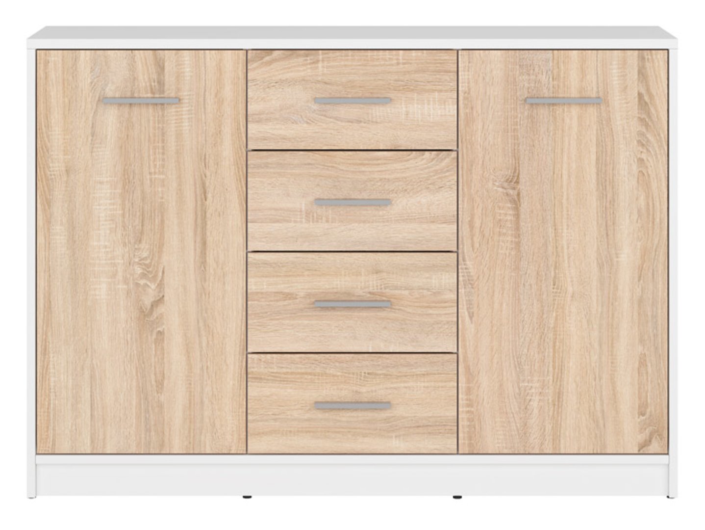 Product code S435-KOM2D4S-BI/DSO Symbol ZM EAN Width 118.5 cm Depth 34 cm Height 84 cm Collection Nepo Plus Color white/sonoma oak Shade light wood Style modern Number of doors 2-door Number of drawers 4-drawers Handle with handles Manufacturer Black Red White Type of furniture Chests of drawers VAT 23% EAN 5906123948258
