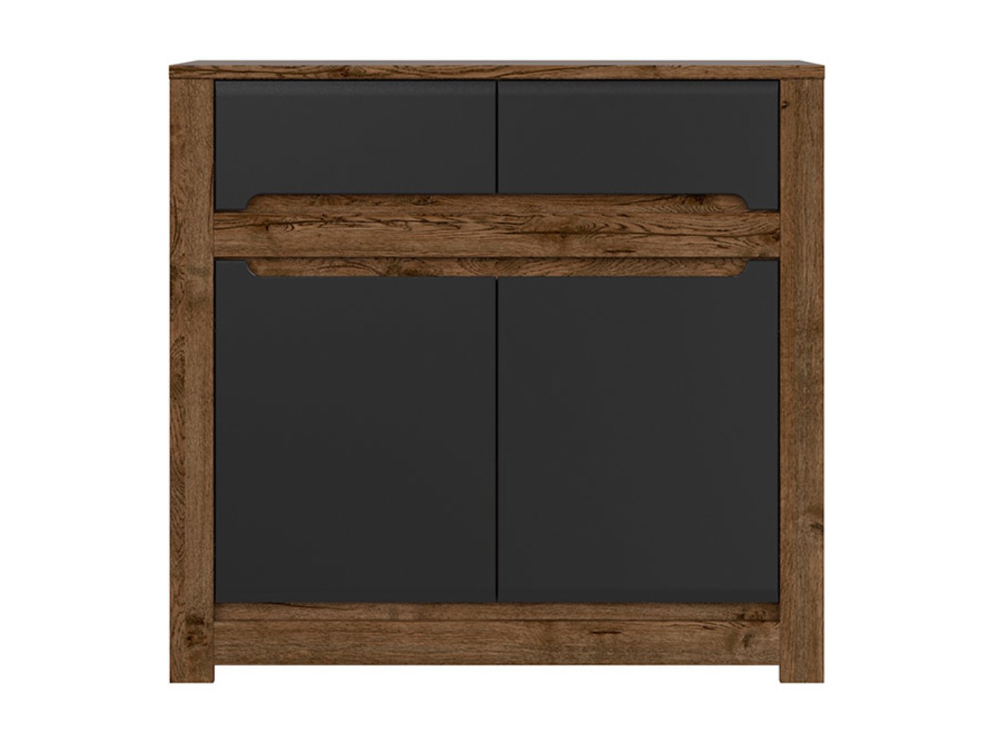 Dvidurė komoda su dviem stalčiais RUSO 104 cm, balandžio ąžuolo spalvos/matinės juodos spalvos