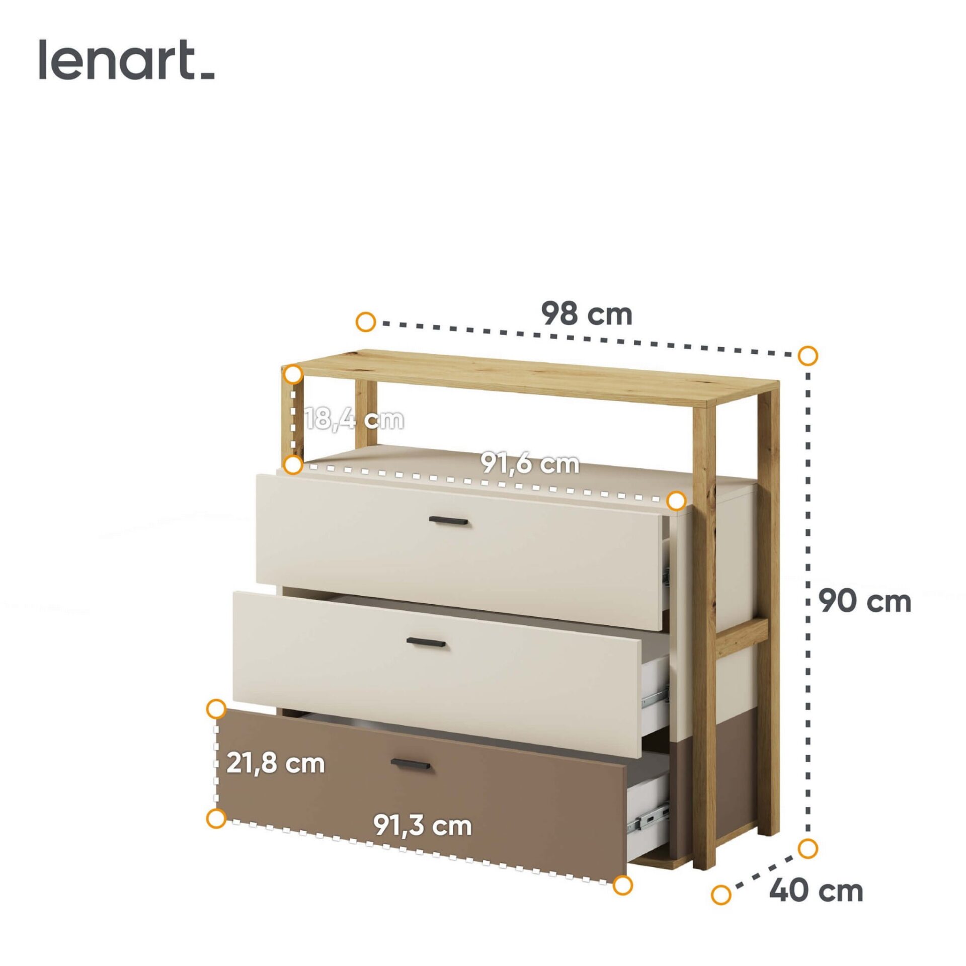 LENNY LY-06 jaunimo komoda | Artisan ąžuolas + smėlio spalva + triufeliai