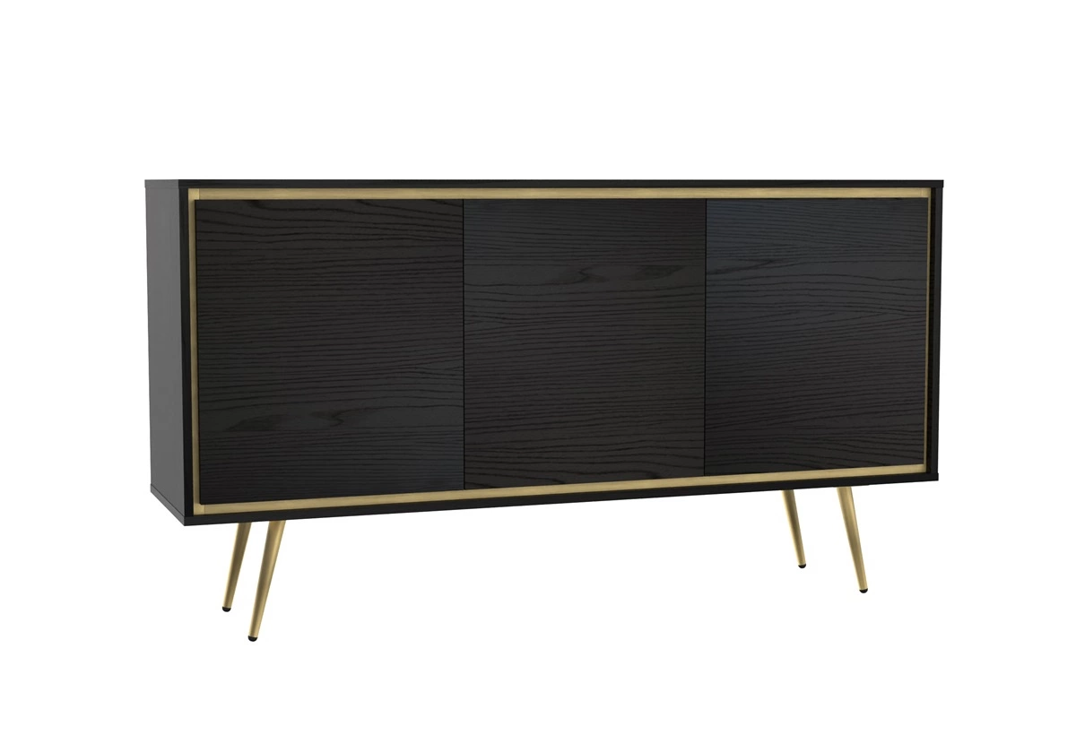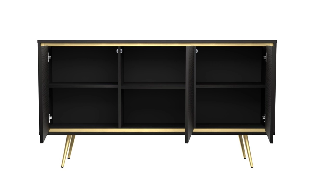 Nevea komoda 150 cm, juodo grafito spalvos, elegantiška komoda svetainei, originalus ir įdomus dizainas, stumiant atidaromos durys