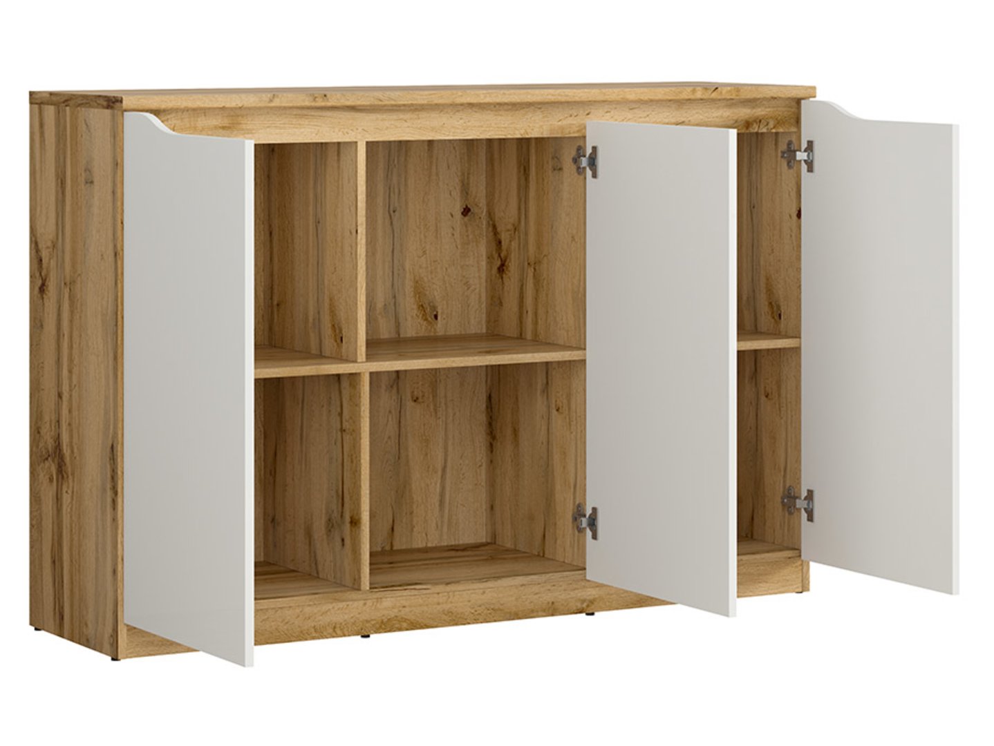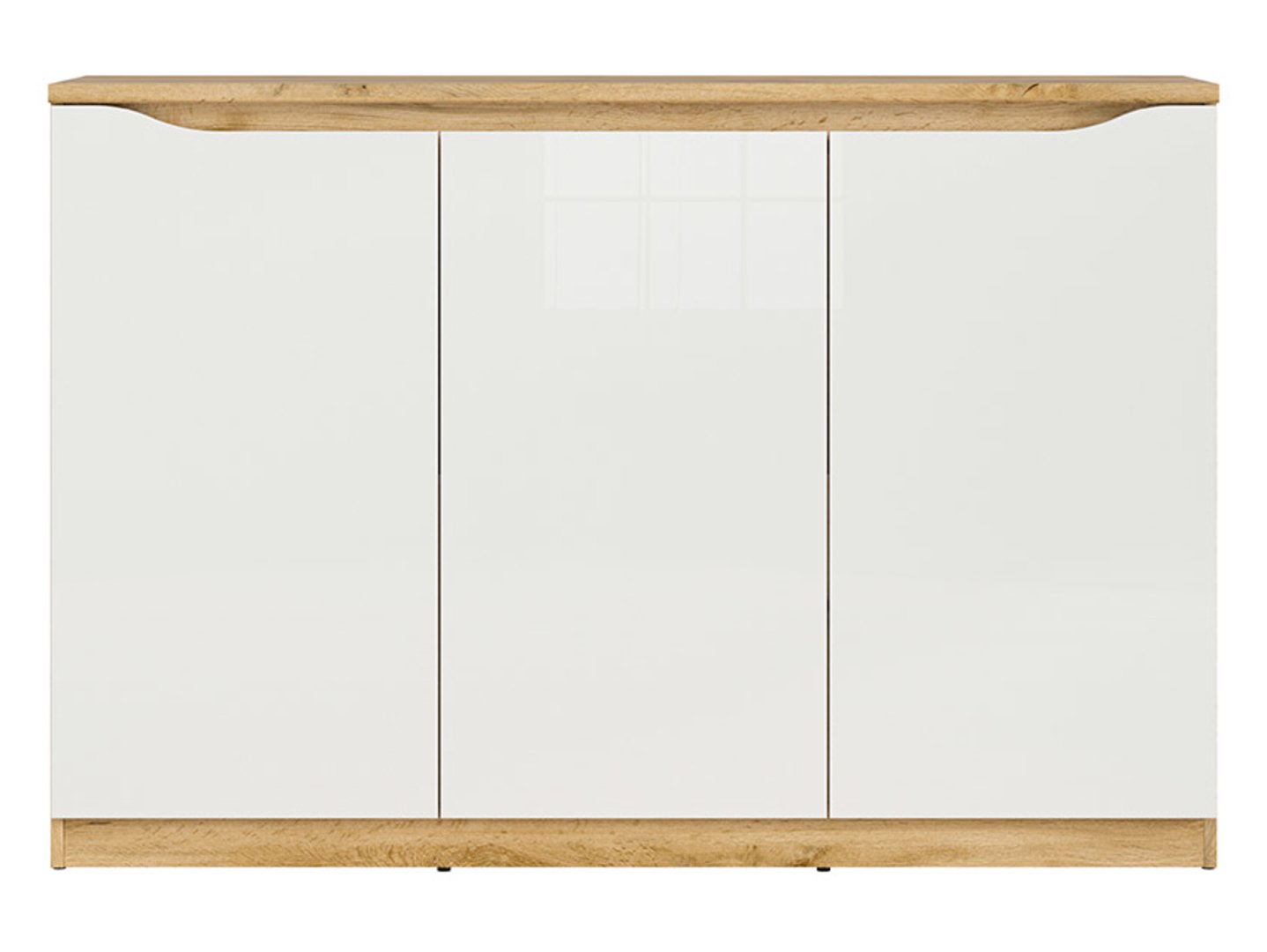 Product code S396-KOM3D-DWO/BIP Symbol ZM EAN Width 135 cm Depth 39.5 cm Height 91.5 cm Collection Nuis Color wotan oak/glossy white Shade light wood Style modern Material laminate Number of doors 3-door Number of drawers without drawers Handle without handles Manufacturer Black Red White Type of furniture Chests of drawers VAT tax 23% EAN 5906123929493