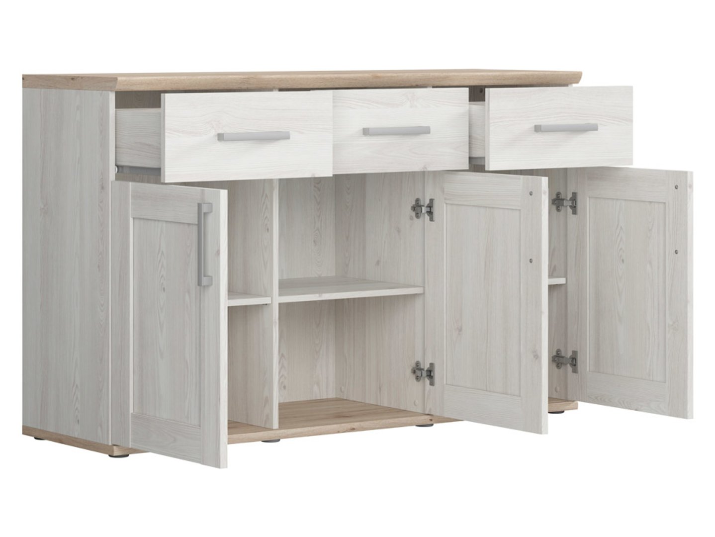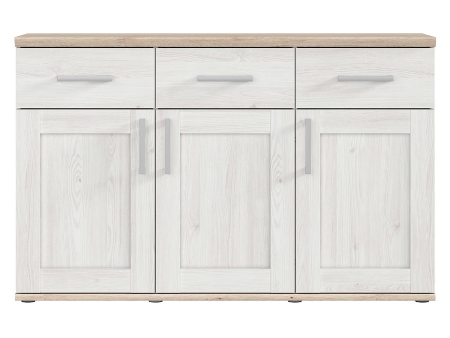 Trijų durų komoda su trimis stalčiais ROMANCE 139,5 cm šviesus Sibiu maumedis/šviesus San Remo ąžuolas