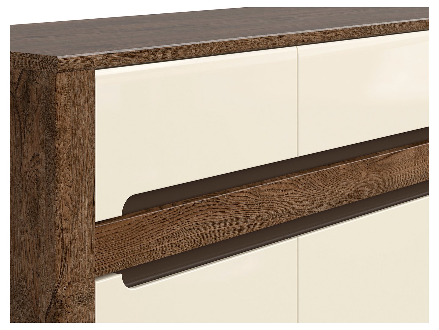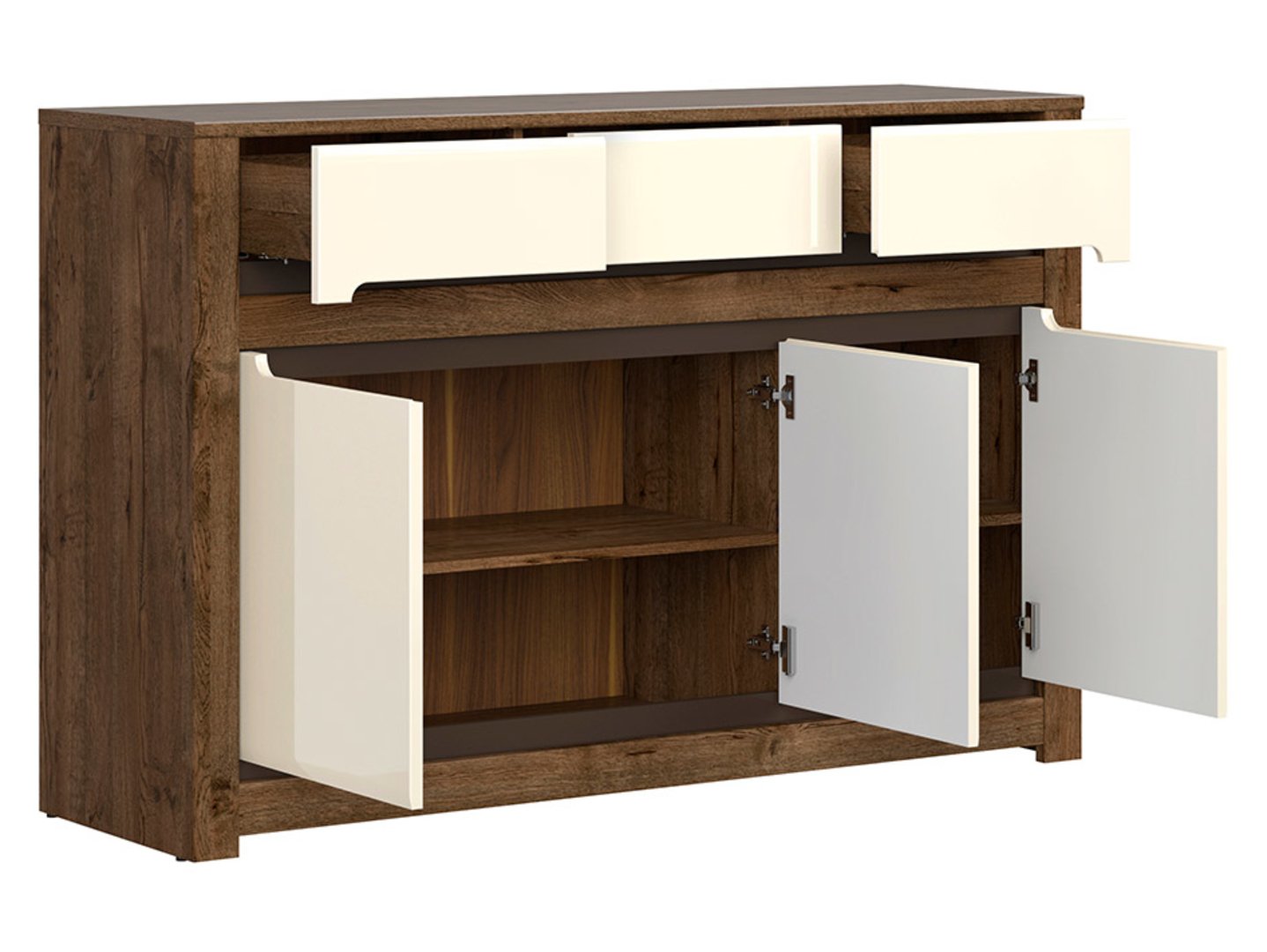 Product code S407-KOM3D3S-DARL/PEP Symbol ZM EAN Width 149 cm Depth 45.5 cm Height 98.5 cm Collection Ruso Color april oak/pearl gloss Shade dark wood Style modern Material laminate Number of doors 3-door Number of drawers 3-drawers Handle without handles Manufacturer Black Red White Type of furniture Chests of drawers VAT 23% EAN 5906123944434