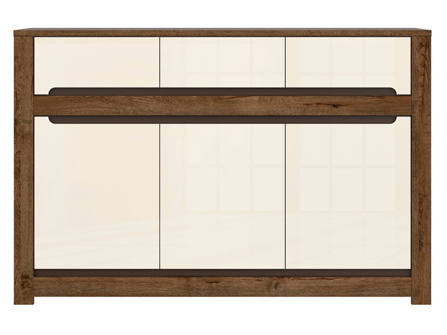 RUSO trijų durų komoda su trimis stalčiais, 149 cm, balandžio ąžuolo spalva / perlų blizgesys