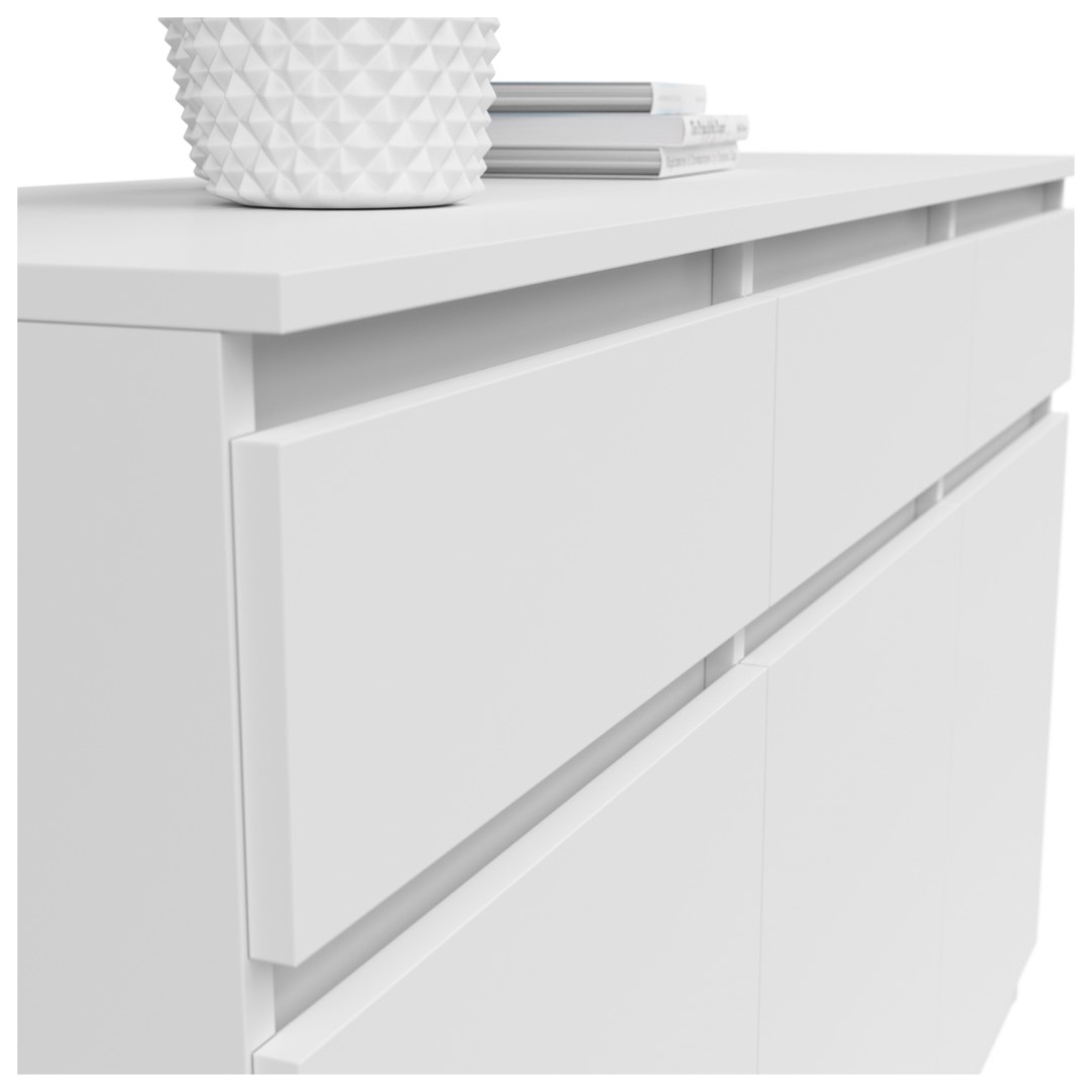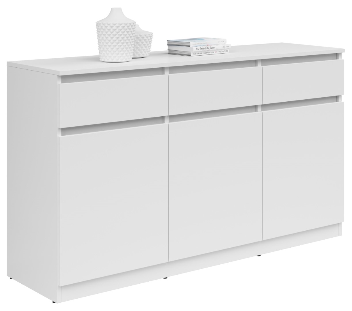 Product code L141-KOM3D3S-BI Symbol ZM EAN Width 135 cm Depth 42 cm Height 81 cm Collection Saturn Color white Shade white Style modern Material laminate Number of doors 3-door Number of drawers 3-drawers Handle without handles Manufacturer Black Red White Type of furniture Chests of drawers VAT 23% EAN 5906123603843