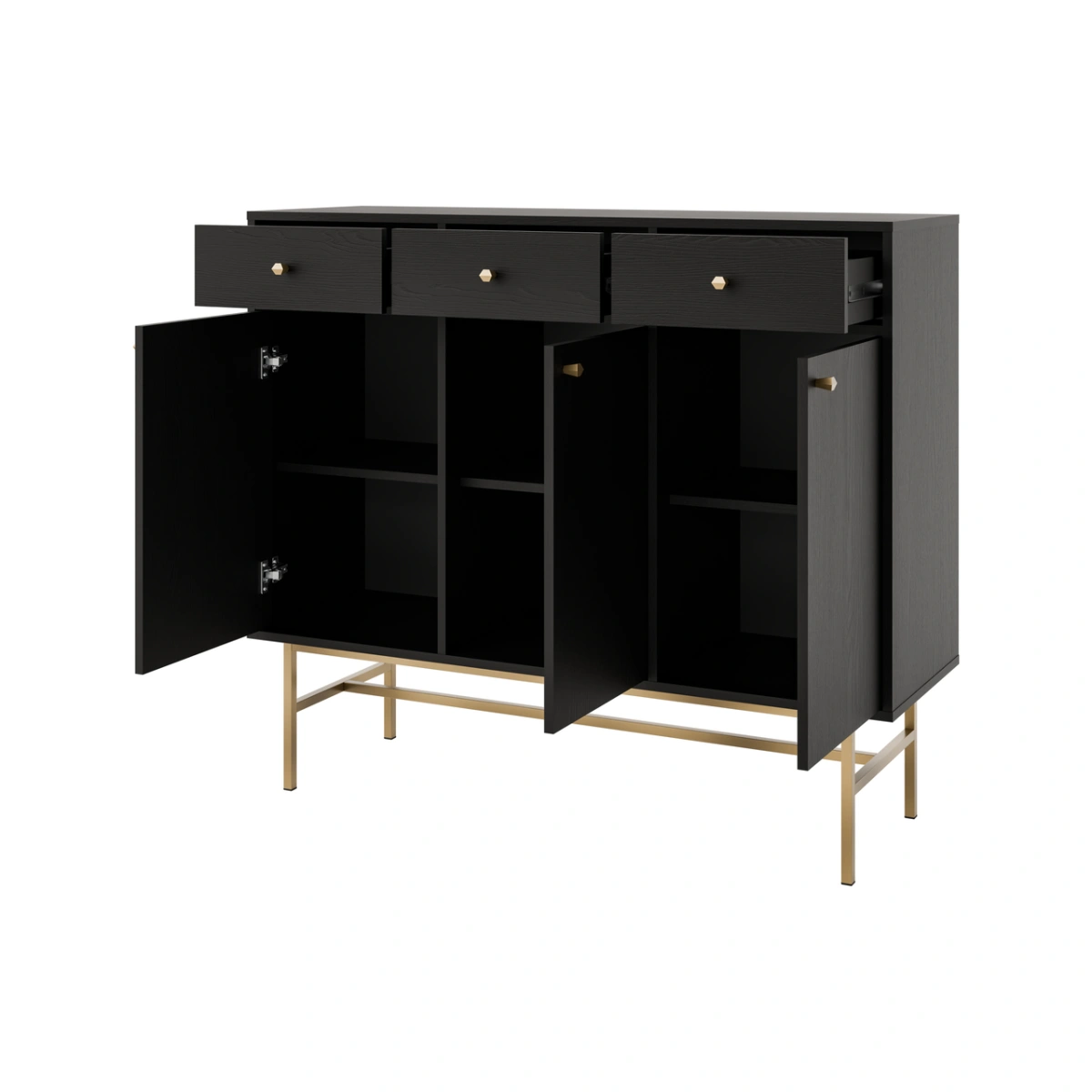 Juoda komoda „Tokyo 3F3S“ su spintelėmis ir stalčiais
