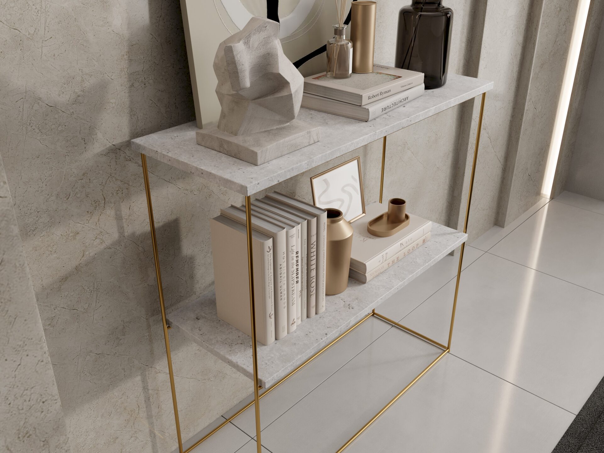 The Toni console table is an elegant and modern piece of furniture that will fit perfectly into a variety of interiors, from minimalist to more eclectic. A distinctive feature of this console table is its wire leg, which gives it a light and modern look. The simple shape of the tabletop perfectly complements the refined shape of the metal base, creating a harmonious whole.