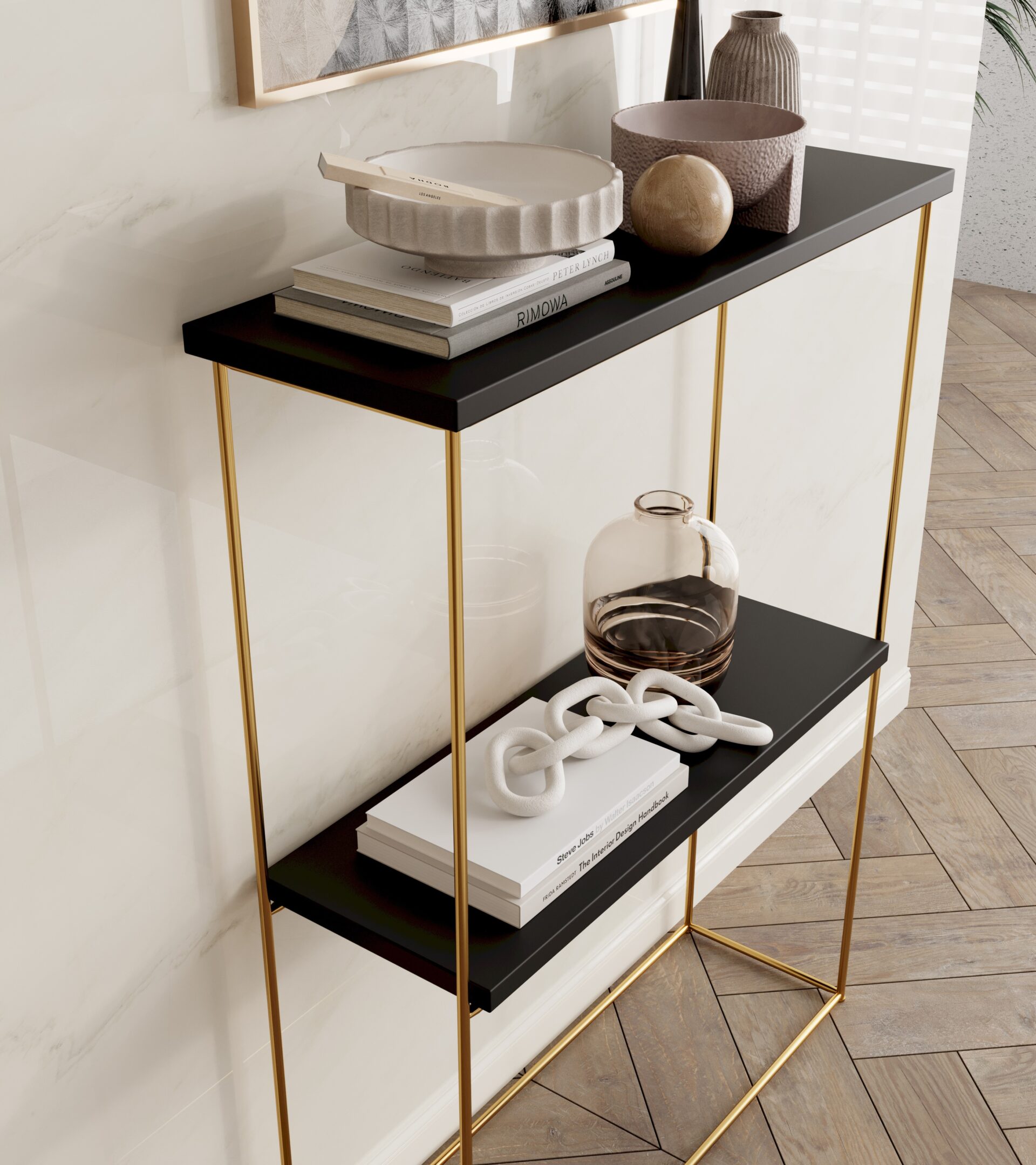 The Velo wire console is an elegant and modern interior design element characterized by minimalist design and high functionality. The Velo wire console is a functional and stylish piece of furniture that will surely add charm to any interior while offering practical storage and display solutions.
