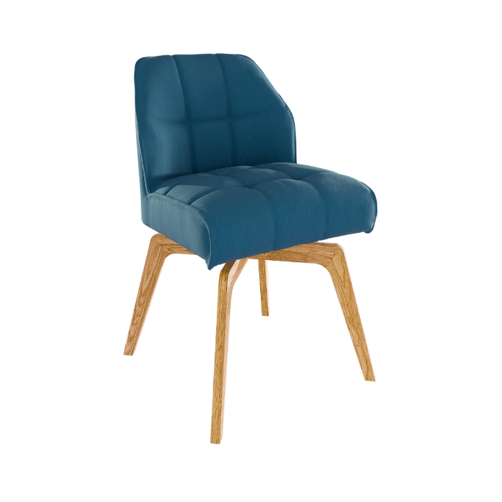 The Bono Wood swivel chair from Bydgoskie Meble combines modern design solutions with meticulous attention to detail. This model features decorative quilting on the seat and backrest, giving it a distinct character and emphasizing its meticulous finish. The swivel wooden base allows the user freedom of movement while maintaining the durability typical of natural materials.