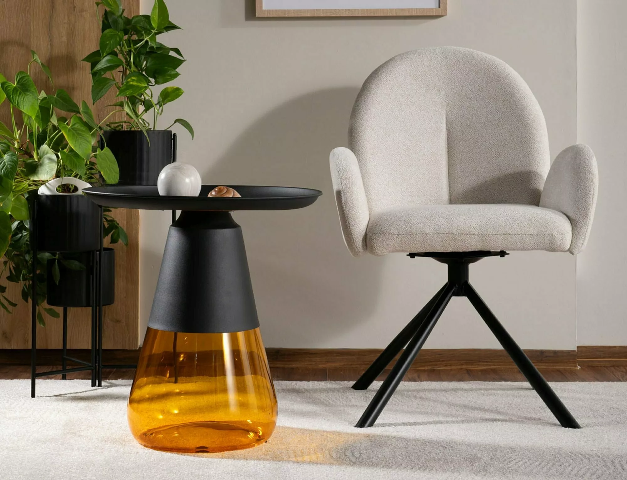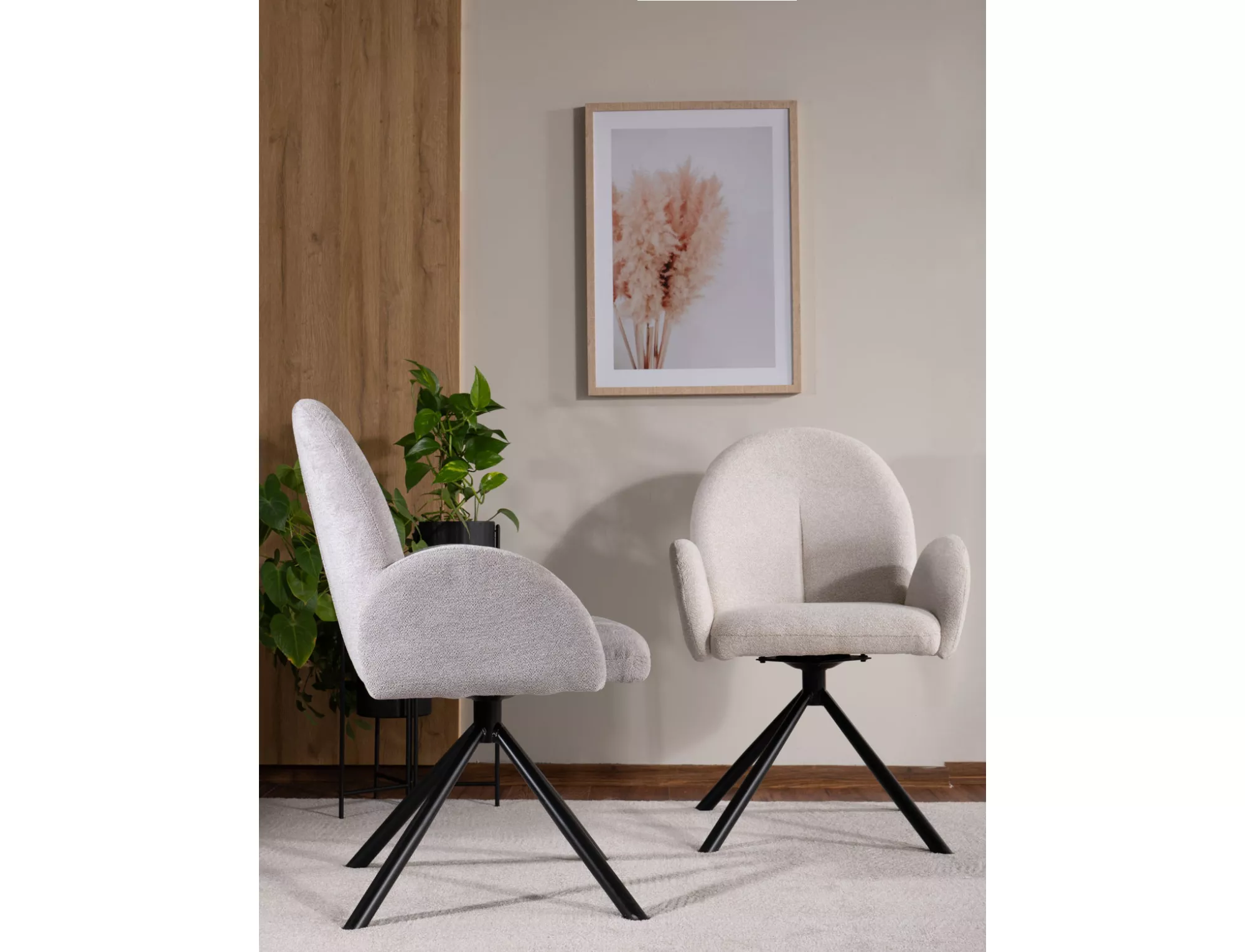 Chair, upholstery: Raven fabric, frame: metal, color: 22 beige / matte black. Auto-return function – seat rotates 180 degrees, with a function of returning to the original position.