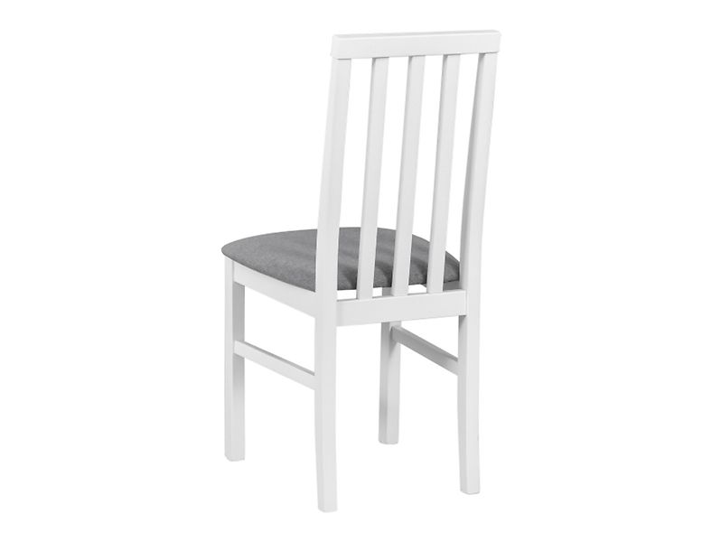 The chair features a slatted backrest made of solid beech wood, which not only looks impressive but also provides adequate back support. The upholstered gray seat is filled with soft polyurethane foam, ensuring comfort even during longer gatherings at the table.