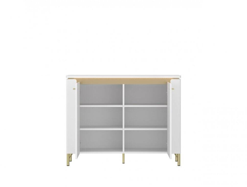 The Lazio sideboard is the perfect solution for those who appreciate modern and minimalist interior design. Glossy white fronts combined with gold accents create a contemporary yet elegant look that perfectly complements a living room or dining room. This piece will easily enhance the luxurious character of your interior.