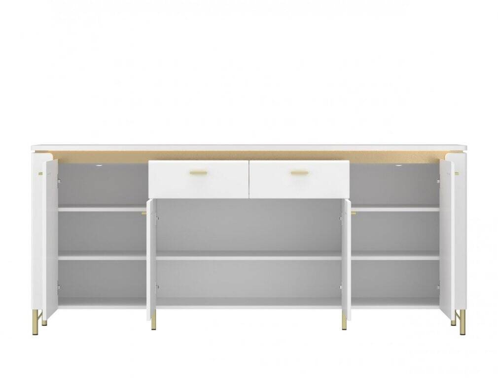 Lazio LAZK03 – 4D2S komoda su LED apšvietimu, Alpių balta/blizgi balta/auksinė