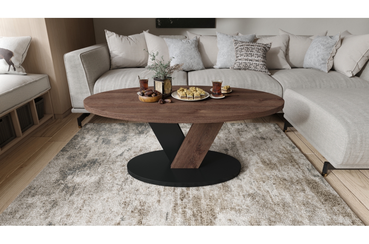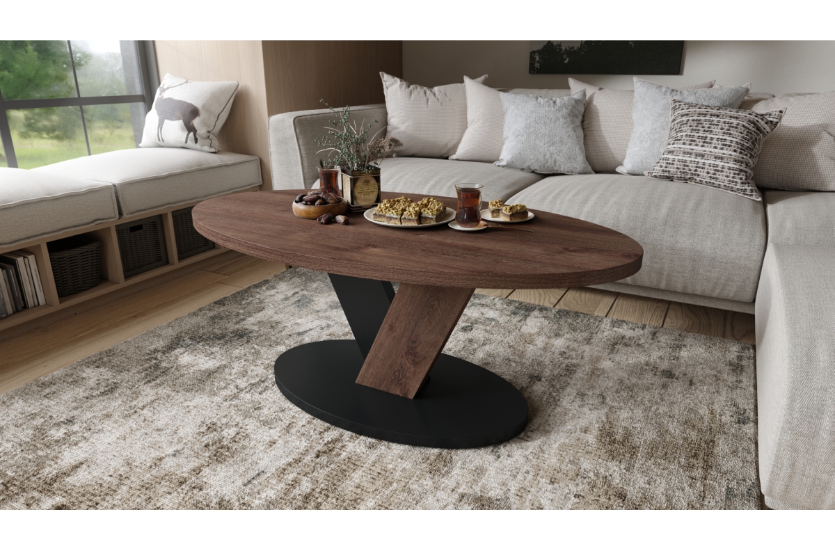 LOVA rudas/juodas ąžuolas – ovalus kavos staliukas 110×60 cm modernus kavos staliukas