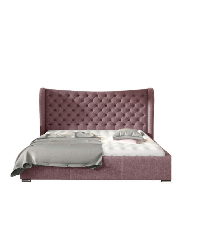 A classic upholstered wingback bed with distinctive side panels and beautiful button tufting. This is precisely what the Lancaster bed is like, with a sleeping area of ​​140×200 cm. This classic-style piece of furniture will be a true addition to a romantic bedroom. Thanks to its moderate dimensions, it will fit perfectly even in small spaces. The set can be expanded with a bedding container and mattress bases. Purchase options and upholstery fabric samples are available in the product creator.