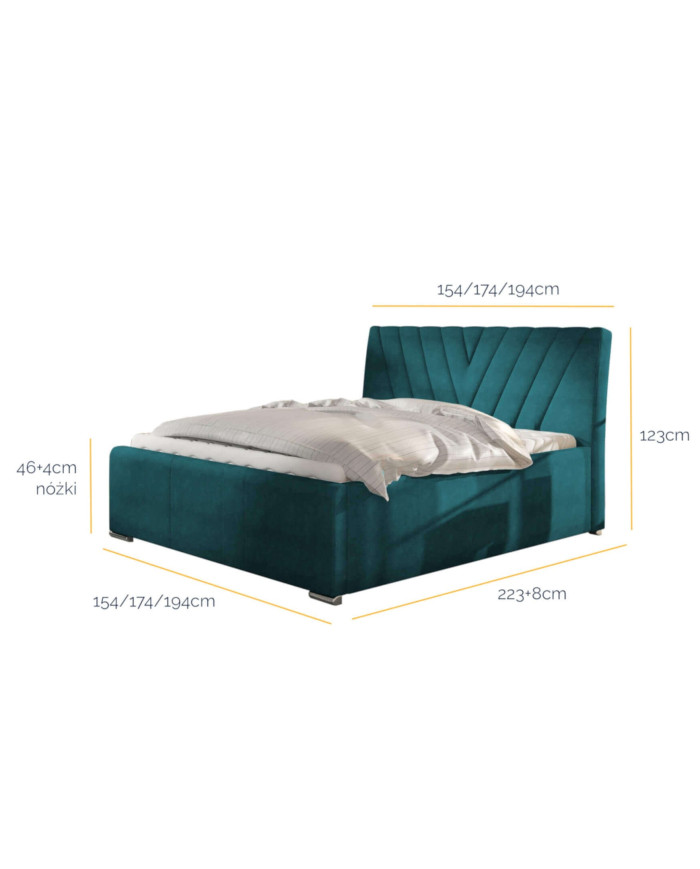 The bed is characterized by its contoured and stitched headboard and high storage box. The furniture can be equipped with a bedding container, a mattress base, or a gas lift frame. The soft and attractive headboard is not only a decorative element but also provides excellent back support for evening reading. The set is available in a wide range of upholstery materials. Leg color samples and upholstery fabric samples are included in the product wizard. The bed requires minimal assembly.