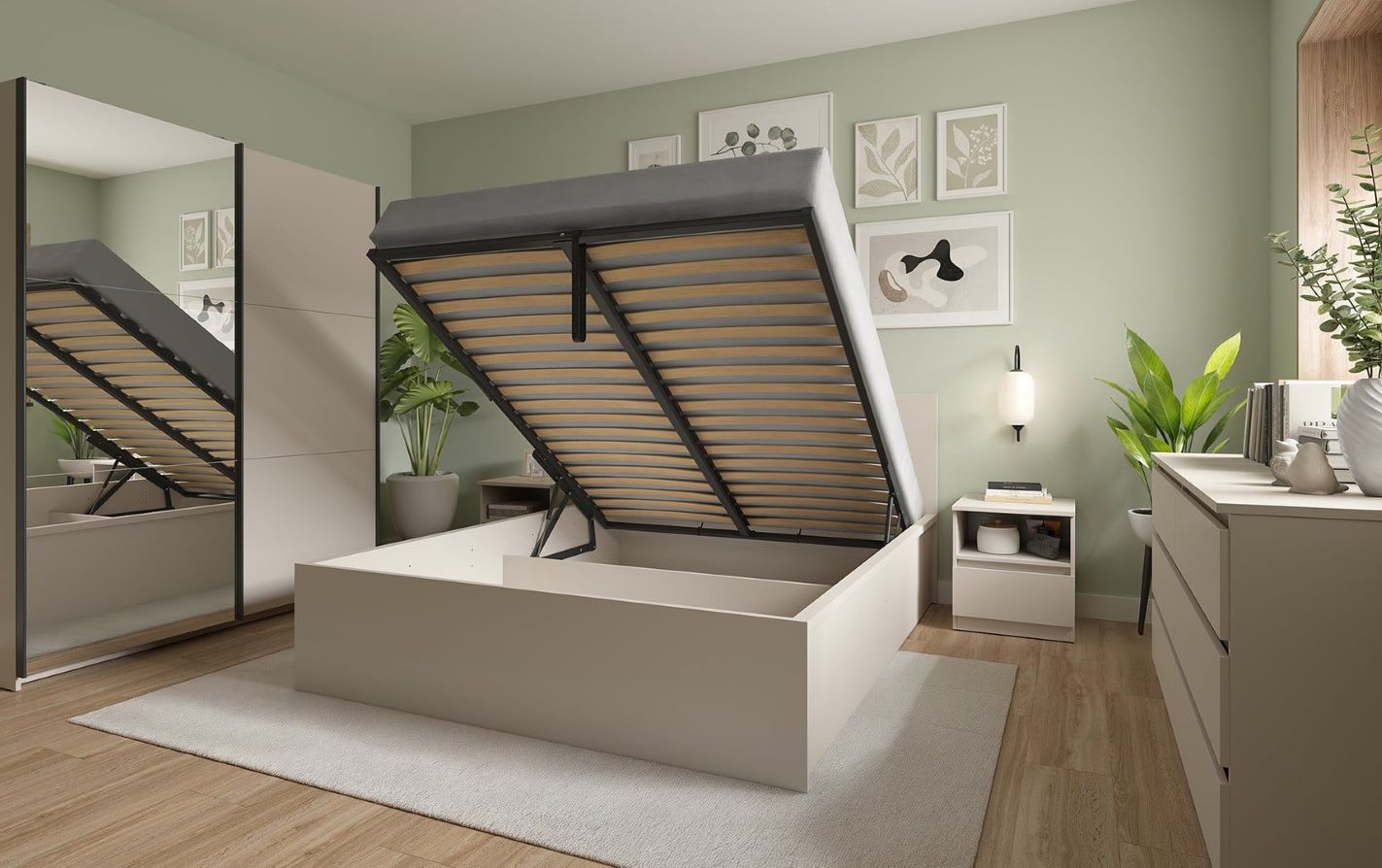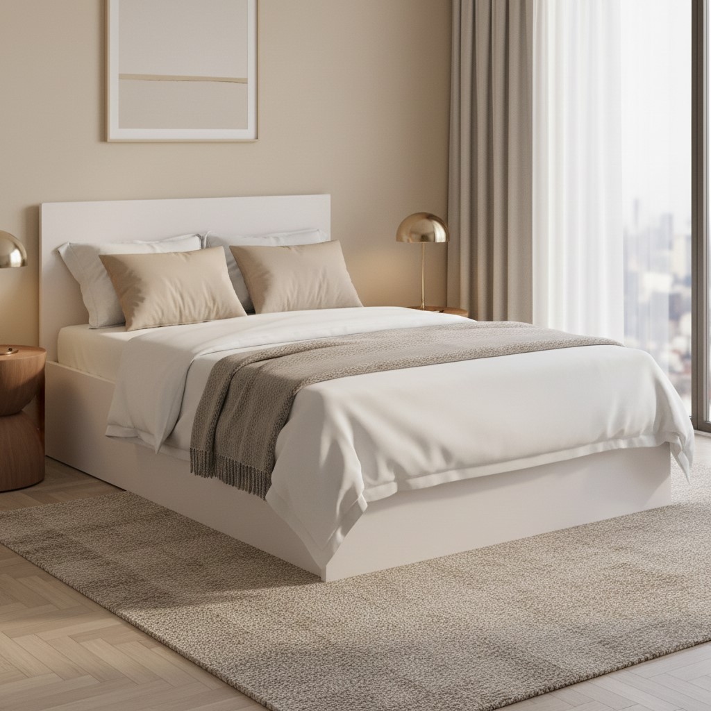 The Tetrix Bed – A Harmonious Space and Comfortable Rest. The Tetrix collection is a modern proposition for bedrooms and youth rooms, combining minimalist design with everyday functionality. Stylish finishes, including an elegant cashmere color, and solid shapes create a space conducive to regeneration and a sense of harmony. Functionality and Configuration: The Tetrix bed is the perfect choice for those seeking to combine modern style with comfortable sleep. The 120×200 cm sleeping area ensures comfortable rest for both teenagers and adults. Please note that the price of the bed does not include a mattress – we leave you complete freedom to choose the model that best suits your needs. A mattress weighing 23-30 kg is required for the frame to function properly.