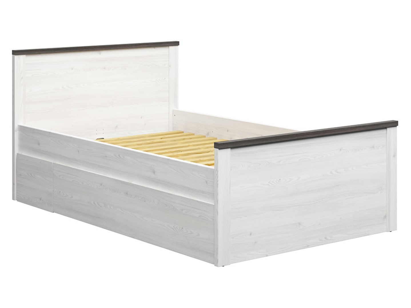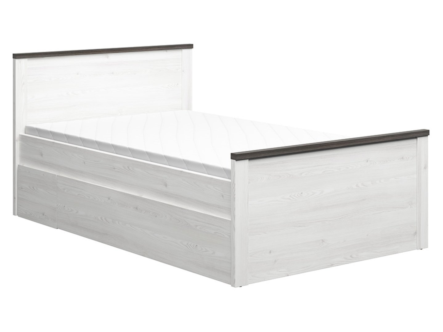 The Hesen 120 Bed – Your Sleep in a Beautiful Space. If arranging a youth room is challenging for you, the Hesen collection may be the solution to help you create the perfect sleeping space. It’s not only functional but also stylish. The bed from the Hesen collection measures 207 x 130 x 95 cm and offers a sleeping area of ​​120 cm wide and 200 cm long. Its minimalist and modern design is perfect for small youth rooms, studio apartments, or small bedrooms. All elements of the Hesen collection are available in two color options. The combination of graphite and artisan oak creates a cool, dark palette with contrasting accents. If you prefer brighter, more natural interiors, light Sibiu larch combined with Larico pine may be the perfect choice. In addition to aesthetic details, it’s worth paying attention to the milling, which gives the bed style and subtlety. The high headboard provides comfortable support and protects the pillows from direct contact with the wall. Although the Hesen bed is minimalist and austere, you can complement it with accessories in warmer tones, such as a rug, lamp, blankets, or decorative pillows, to add a cozy touch to the room. The Hesen bed is sold without a frame or mattress, allowing you to choose the elements that will ensure a comfortable night’s sleep.