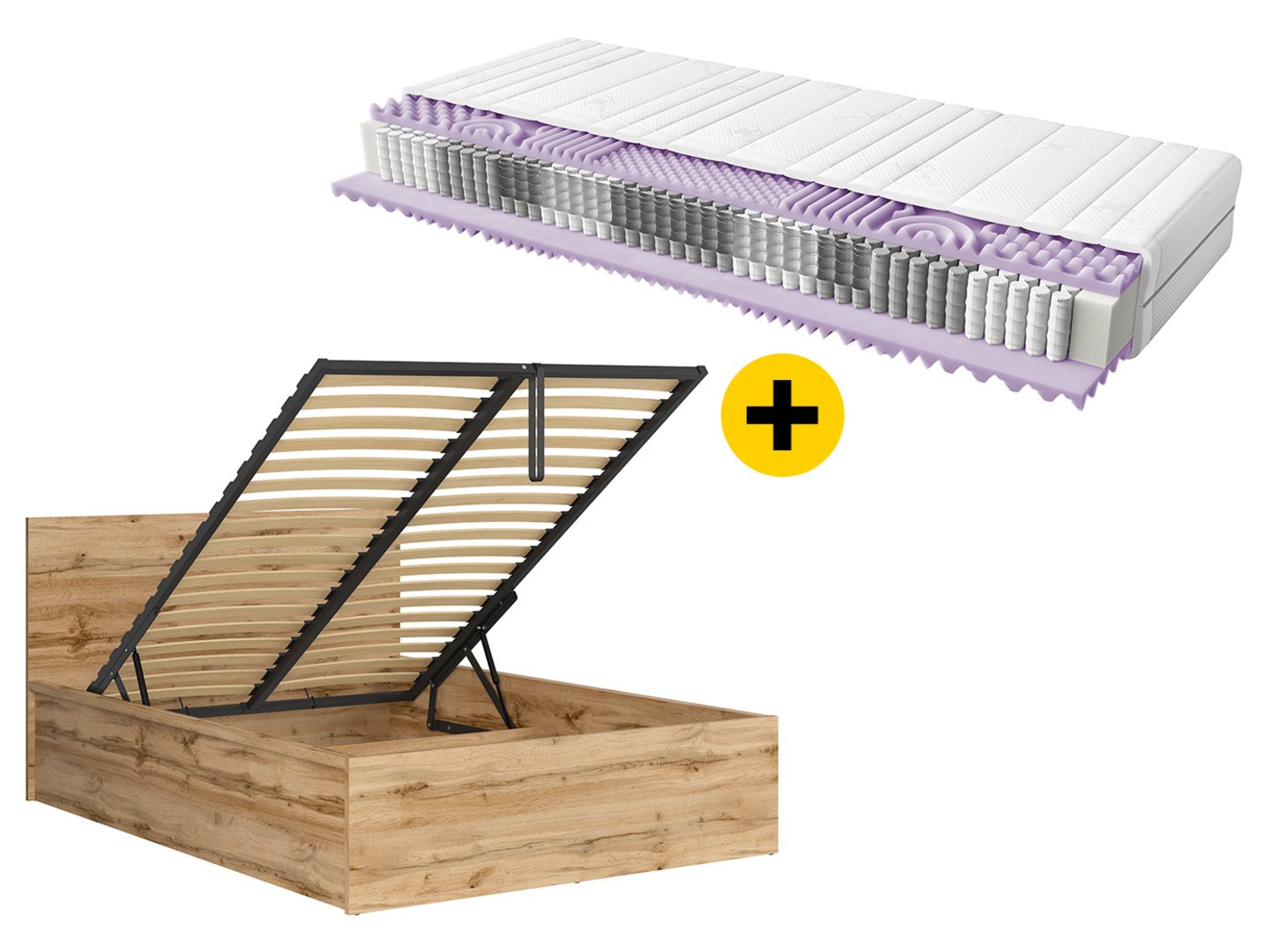 Lova 140 B su rėmu ir čiužiniu MIMAS MULTI SILVER TETRIX 149 cm Wotan ąžuolas