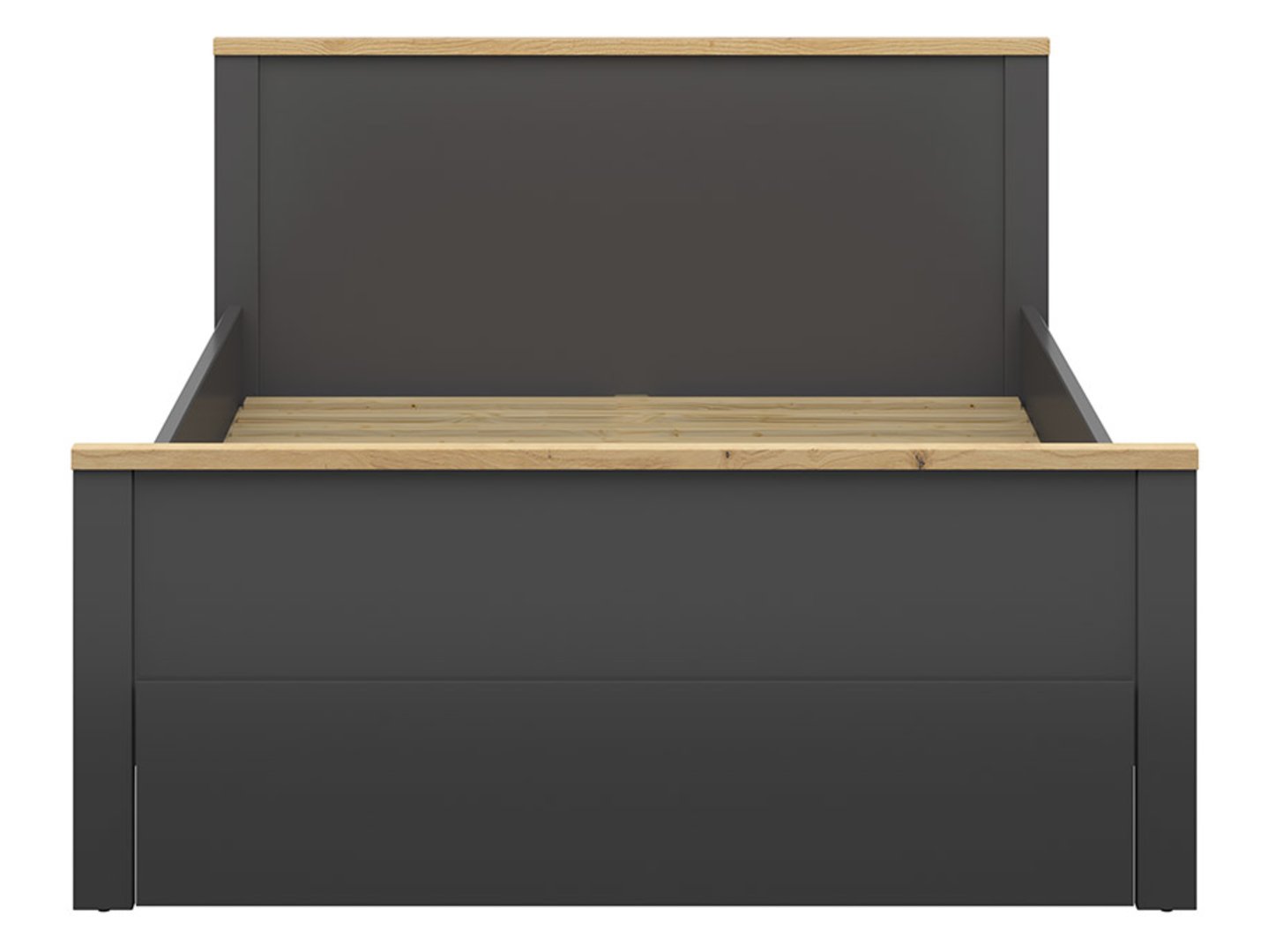 The Hesen Bed – A Guarantee of High-Quality Sleep. The Hesen collection offers everything you need to create a stylish and well-appointed interior. With a variety of furniture styles tailored to your family’s diverse needs, a neutral color palette, and minimalist design, you’ll be able to create a space that will enhance every day. The bedroom deserves special attention when designing. It’s where you rest, sleep, and spend time relaxing. That’s why your bedroom must have a Hesen bed, the perfect piece of furniture for those who love comfort. The Hesen bed, with a sleeping surface measuring 140 x 200 cm, provides a comfortable sleep for two. The high headboard helps keep the duvet and pillows in place and can also serve as a comfortable backrest for an evening read. The bed is available in two color options. The combination of a graphite frame with artisan oak slats creates a calm, elegant look. The second option is a light Sibiu larch frame with Larico pine slats, which gives the bed a warmer feel. Subtle milling adds character. Create a good mood before bed by surrounding yourself with calm, relaxing colors. The Hesen bed will allow you to create the perfect place to rest. Please note that the price of the bed does not include the frame or mattress, allowing you to choose the elements that will ensure optimal sleep.