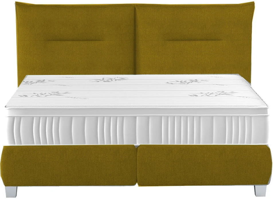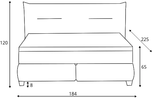The Fog upholstered bed features a high headboard with soft, large cushions and vertical stitching. The bed does not have a bedding compartment. The price does not include the mattress or frame. The bed is available in sizes 140, 160, and 180 cm.