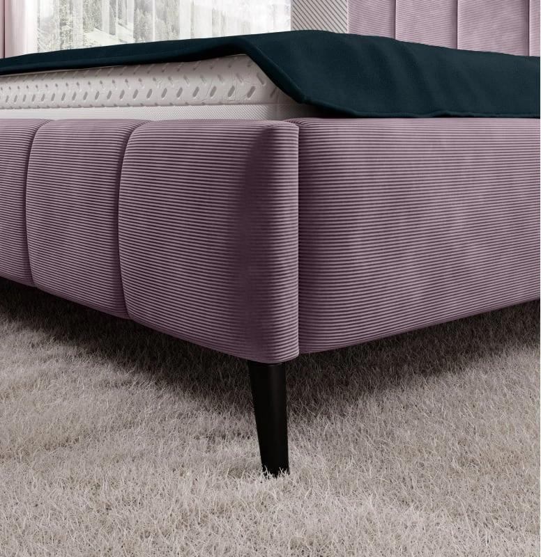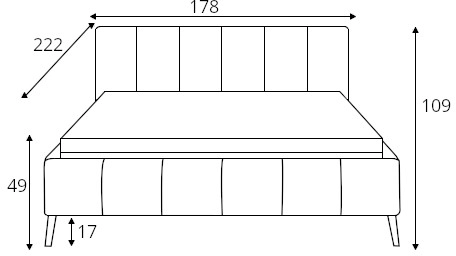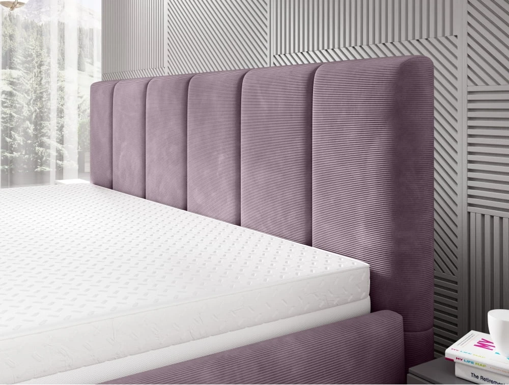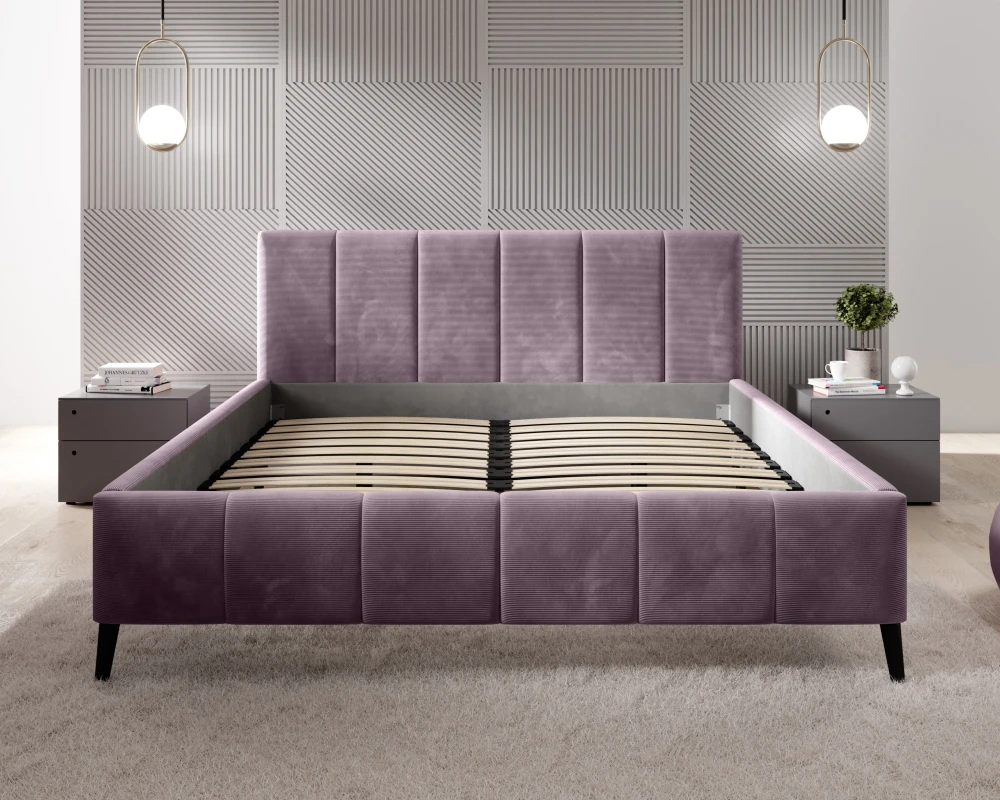 Riva upholstered bed with a 109 cm headboard and vertical stitching. The price includes the frame. The mattress must be purchased separately. The bed is available in sizes 140, 160, and 180 cm.