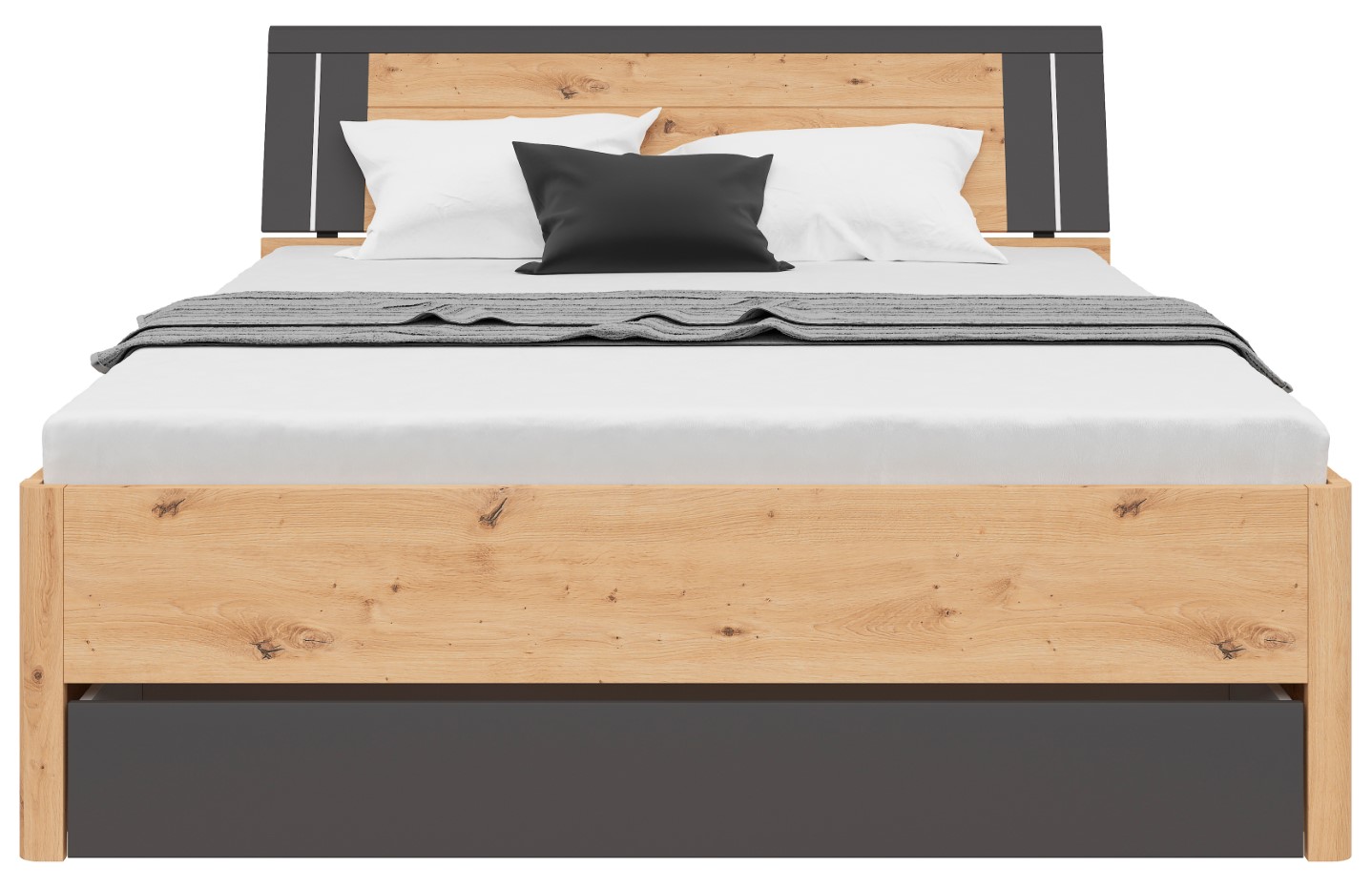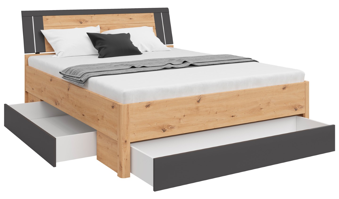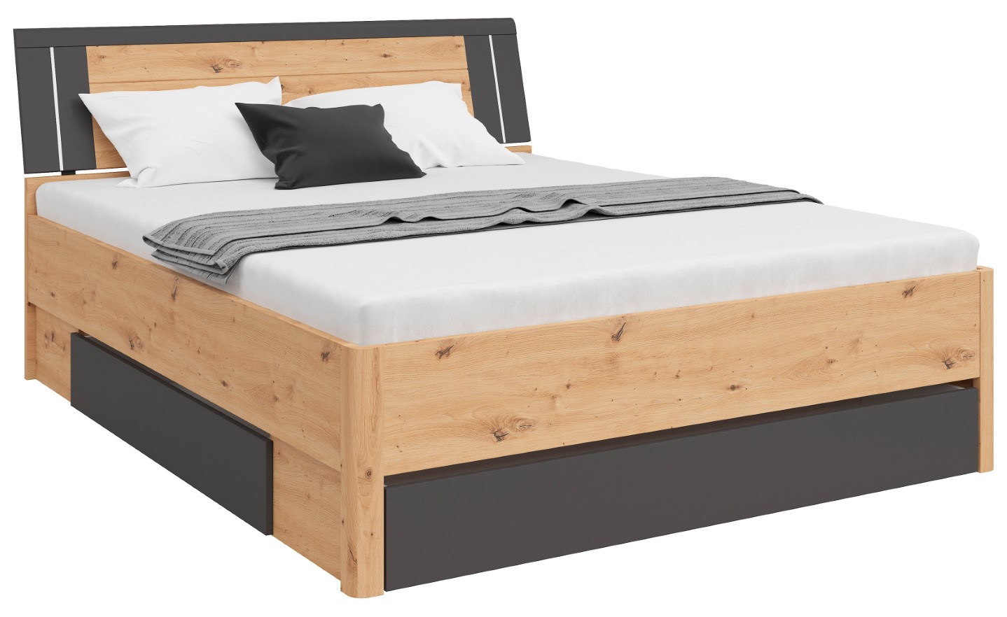 Product code L141-LOZ3S/160-DASN/GF Symbol ZM EAN Length 216 cm Width 165 cm Height 97 cm Collection Saturn Color artisan oak/graphite Shade light wood Style modern Material laminate Sleeping function with sleeping function Sleeping area 160×200 Container with container Manufacturer Black Red White Furniture type Beds VAT 23% EAN 5906123603959