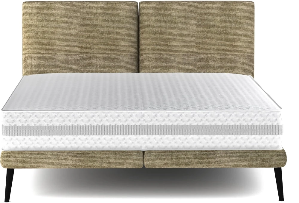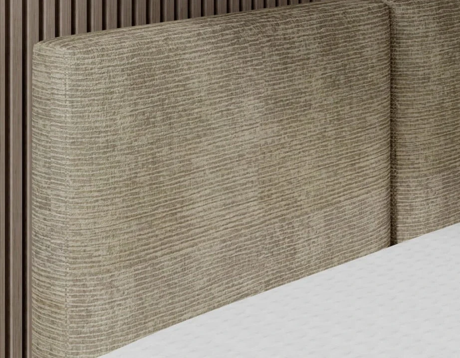 Selene upholstered bed with a 106 cm headboard and vertical stitching dividing the headboard into two equal sections. The price includes the body of the furniture. The mattress must be purchased separately. The bed is available in sizes 140, 160, and 180 cm.