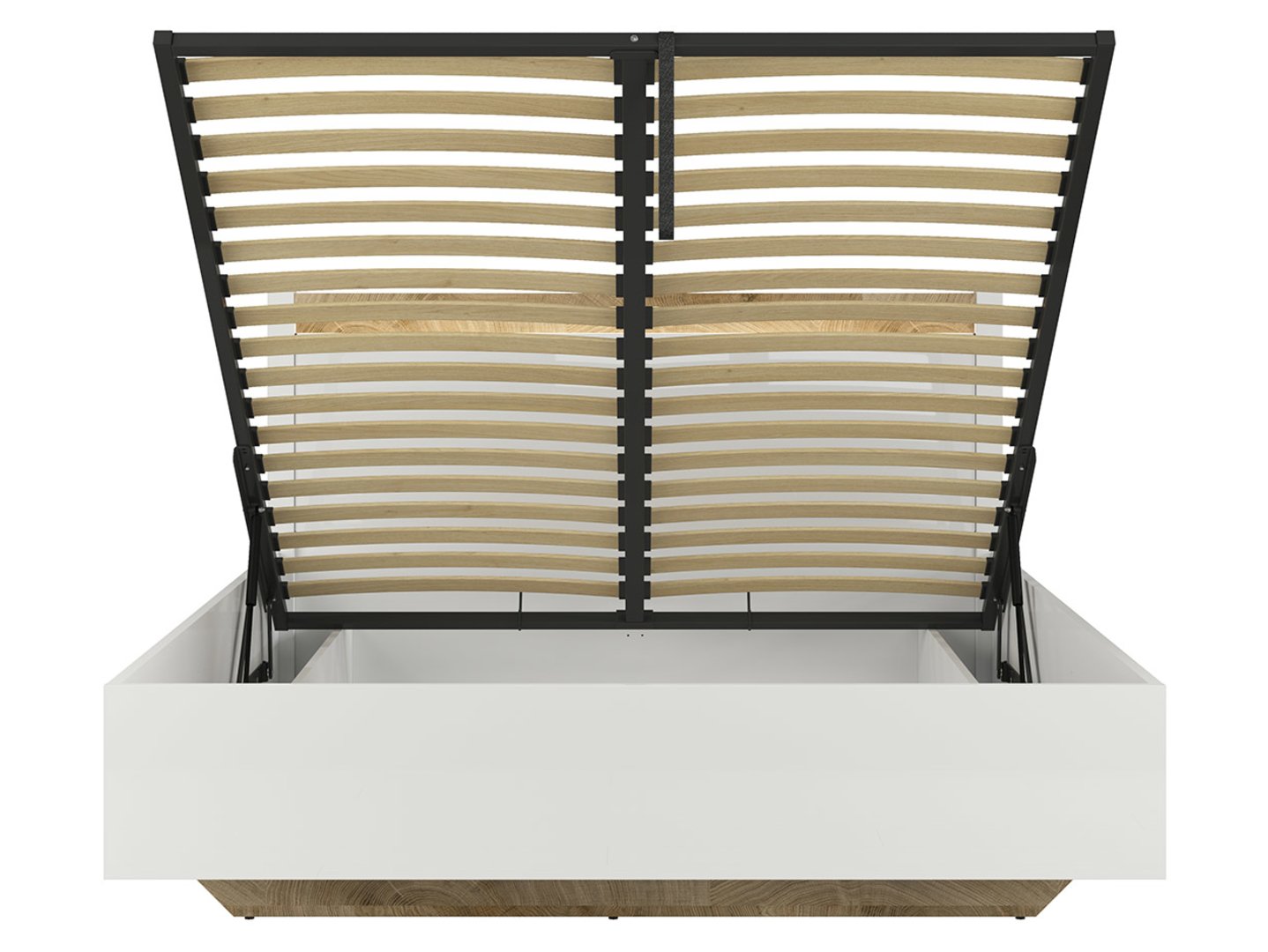 Lova 160 su daiktadėže ir pakėlimo rėmu ALAMEDA balta blizgi/vestminsterio ąžuolas