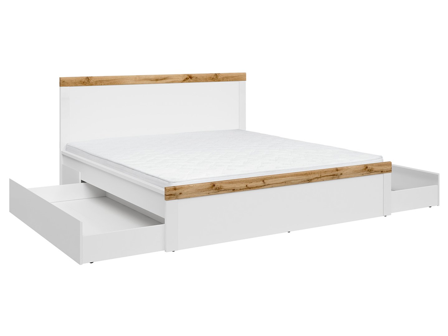 The Holten 180 Bed – Comfort and Elegance on a Royal Scale. The 180 cm wide Holten bed is a great choice for those who value space and comfort in their bedroom. It’s a place where you can enjoy a comfortable night’s sleep and create an elegant interior design. Here’s why you should choose this spacious bed: Large Sleeping Area: The 180 x 200 cm bed is a true oasis of comfort, accommodating both you and your partner, and even your little ones who enjoy reading or playing together. High Headboard: The headboard of the Holten bed is not only attractive but also practical. It allows you to comfortably lean back while reading, watching TV, or simply relaxing in bed. To ensure maximum sleep comfort, it’s worth choosing the right frame and mattress that meet your individual needs. The Holten bed is ready to receive your perfect set. Elegant design: The white bed frame combined with Wotan Oak headboard slats create a beautiful contrast. These slats give the furniture character and a unique look. If you need additional storage space for bedding, seasonal clothing, or other items, the Holten bed can be expanded with a drawer, helping keep your bedroom tidy. The Holten bed complements other elements of the Holten collection perfectly, allowing you to create a cohesive and elegant bedroom arrangement. It’s the perfect way to ensure harmony and stylish interior design. The Holten 180 bed is not only a piece of furniture for sleeping but also a focal point in the bedroom, giving it a unique character and comfort. It’s a place where you can enjoy luxurious sleep and relaxation on a royal scale. Note: The price of the bed does not include the frame and mattress, so it’s worth choosing them accordingly to ensure maximum sleep comfort. Holten 180 Bed – Comfort and Elegance on a Royal Scale. The 180 cm wide Holten bed is a great option for those who value space and comfort in the bedroom. It’s a place where you can enjoy a comfortable night’s sleep and create an elegant interior design. Here’s why you should choose this spacious bed: Large sleeping area: The 180 x 200 cm bed is a true oasis of comfort that will accommodate both you and your partner, and even children who enjoy coming to the bedroom to read or play together. High headboard: The headboard of the Holten bed is not only attractive but also practical. Thanks to it, you can comfortably lean back while reading a book, watching TV, or simply relaxing in bed. To ensure maximum sleep comfort, it’s worth choosing the right frame and mattress that will meet your individual needs. The Holten bed is ready to receive your perfect set. Elegant design: The white bed frame combined with Wotan Oak headboard slats create a beautiful contrast. These slats give the piece character and a unique look. If you need additional storage space for bedding, seasonal clothing, or other items, the Holten bed can be expanded with a drawer, helping keep your bedroom tidy. The Holten bed complements other elements of the Holten collection perfectly, allowing you to create a cohesive and elegant bedroom arrangement. It’s the perfect way to ensure harmony and stylish interior design. The Holten 180 bed is not only a bed but also a focal point in the bedroom, giving it a unique character and comfort. It’s a place where you can enjoy a luxurious night’s sleep and relaxation on a royal scale. Please note: the price of the bed does not include the bed frame and mattress, so it’s worth choosing them carefully to ensure maximum comfort.