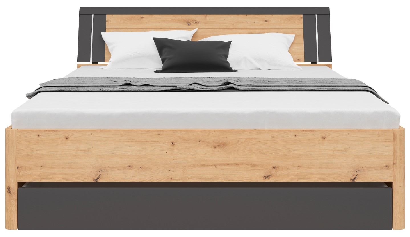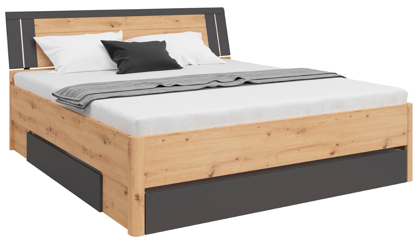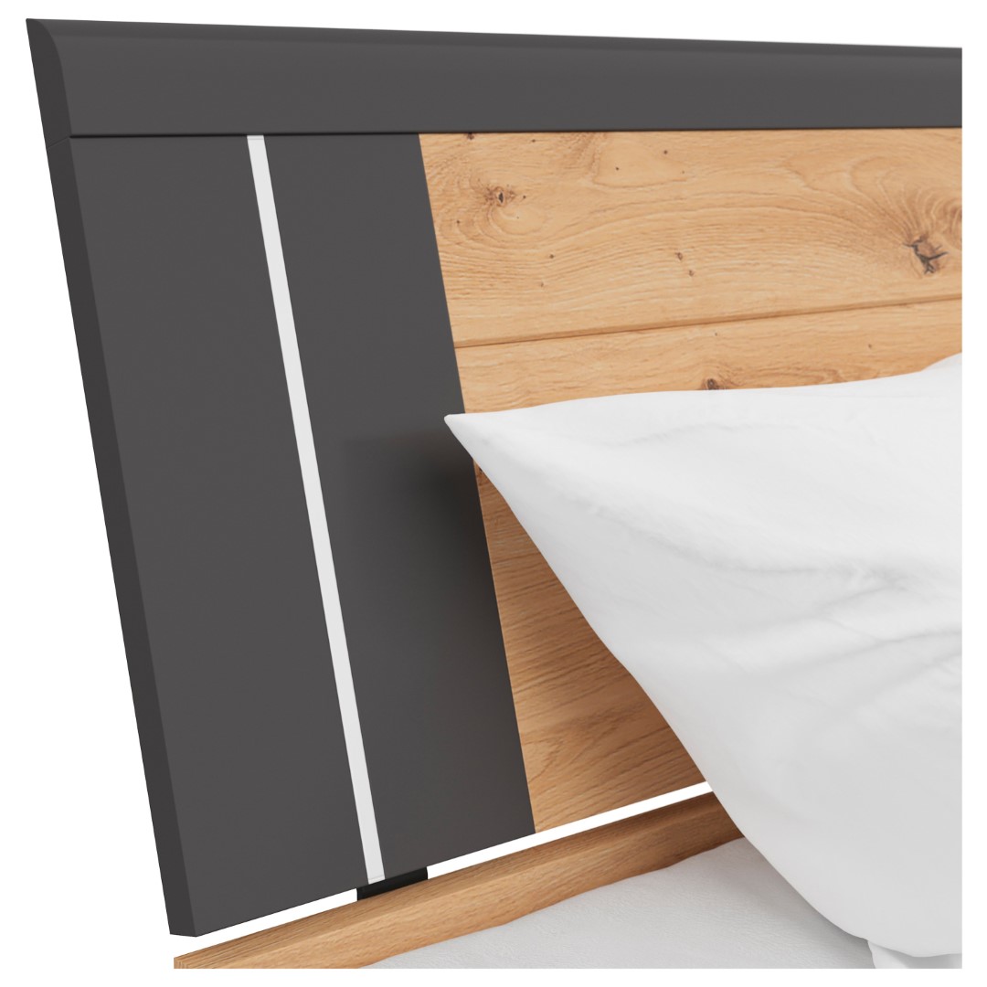 Product code L141-LOZ3S/180-DASN/GF Symbol ZM EAN Length 216 cm Width 185 cm Height 97 cm Collection Saturn Color artisan oak/graphite Shade light wood Style modern Material laminate Sleeping function with sleeping function Sleeping area 180×200 Container with container Manufacturer Black Red White Furniture type Beds VAT 23% EAN 5906123604000