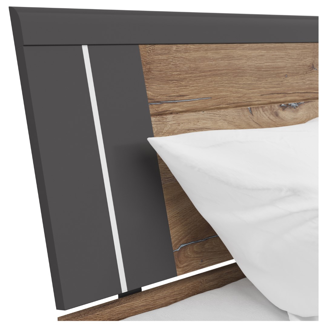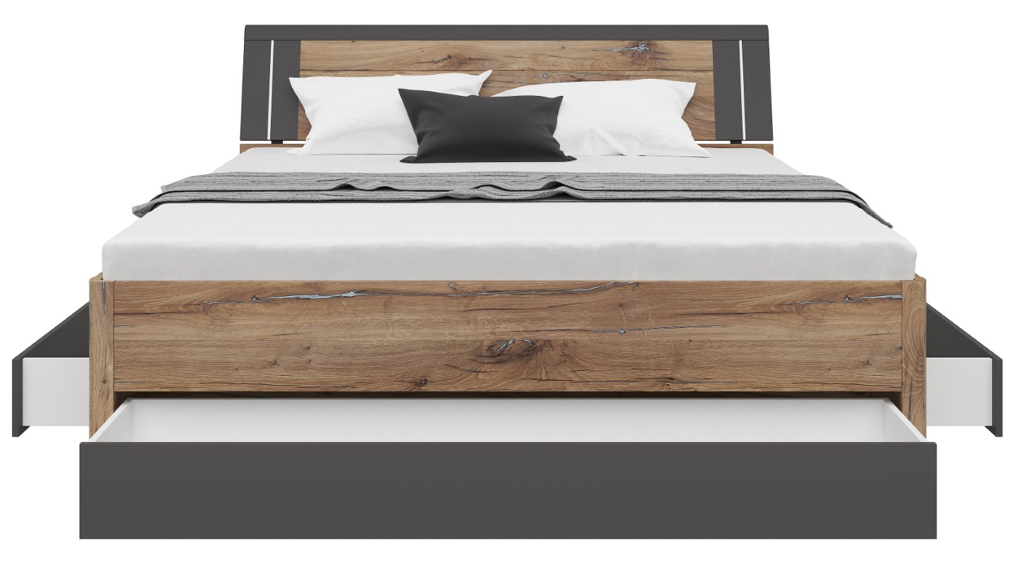 The Saturn 180 Bed – Good for Your Sleep. Sleep is a journey into the depths of our dreams, and the right bed is like a satellite that escorts us on this magical journey every night. The Saturn 180 Bed is not just a place to sleep; it’s a satellite serving your sleep, offering not only comfort but also modern design and practical solutions. The bed frame is made of solid 22 mm thick chipboard, ensuring durability and structural stability. The bed front, made of 16 mm thick chipboard, is available in a variety of colors, such as white, matte white/graphite, artisan oak/white, artisan oak/graphite, and dark flagstaff oak/graphite. This allows you to customize the bed to suit your individual preferences and interior style. Three drawers are not only a practical storage solution but also an element that helps keep your bedroom tidy. Thanks to them, everyday essentials are always within reach, yet tucked away out of sight. It’s the perfect solution for those who value functionality and aesthetics in one. LED lighting is another advantage of the Saturn bed, giving it a modern and stylish character. The subtle illumination makes the bed not only a place to sleep but also a designer element. This subtle light accompanies you during moments of relaxation and rest. In short, the Saturn 180 Bed is not just a piece of furniture for sleeping; it’s a satellite at the service of your sleep, ensuring not only comfort but also aesthetics and functionality. Its modern design, variety of colors, storage drawers, and LED lighting make sleep an unforgettable experience every night. Discover the magical world of sleep with the Saturn 180 Bed!