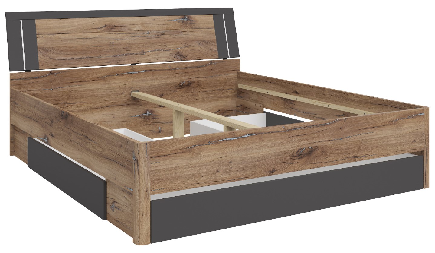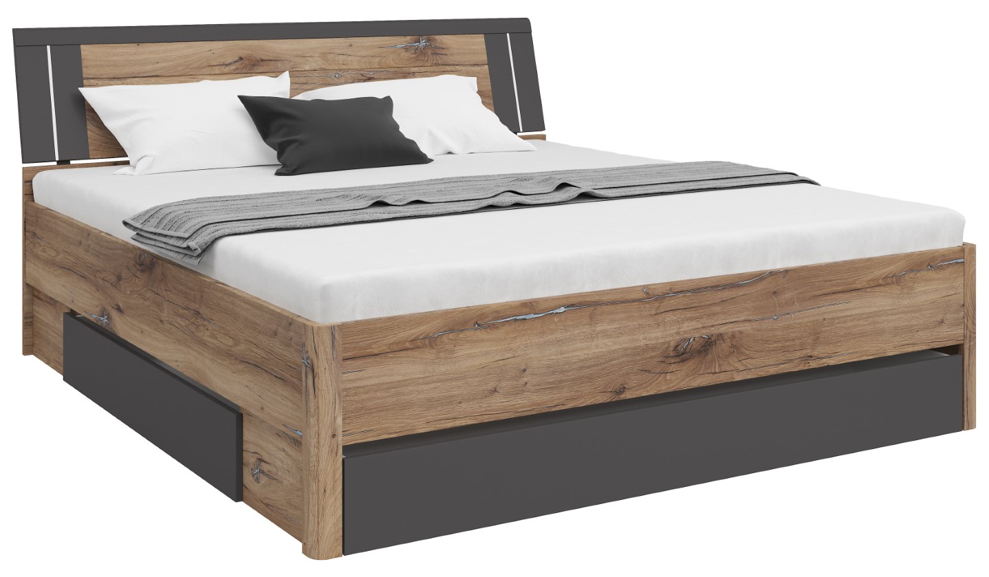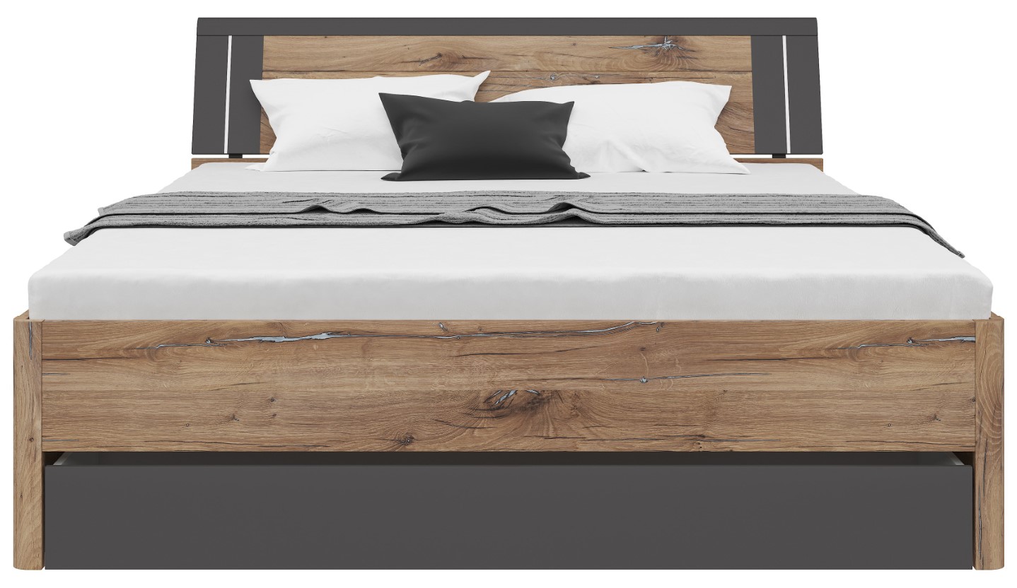 Product code L141-LOZ3S/180-DFC/GF Symbol ZM EAN Length 216 cm Width 185 cm Height 97 cm Collection Saturn Color dark flagstaff oak/graphite Shade dark wood Style modern Material laminate Sleeping function with sleeping function Sleeping area 180×200 Container with container Manufacturer Black Red White Furniture type Beds VAT 23% EAN 5906123604017