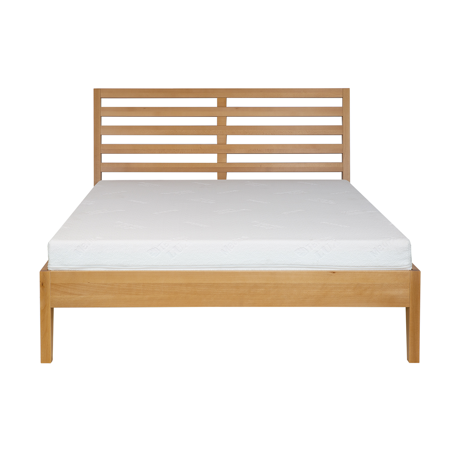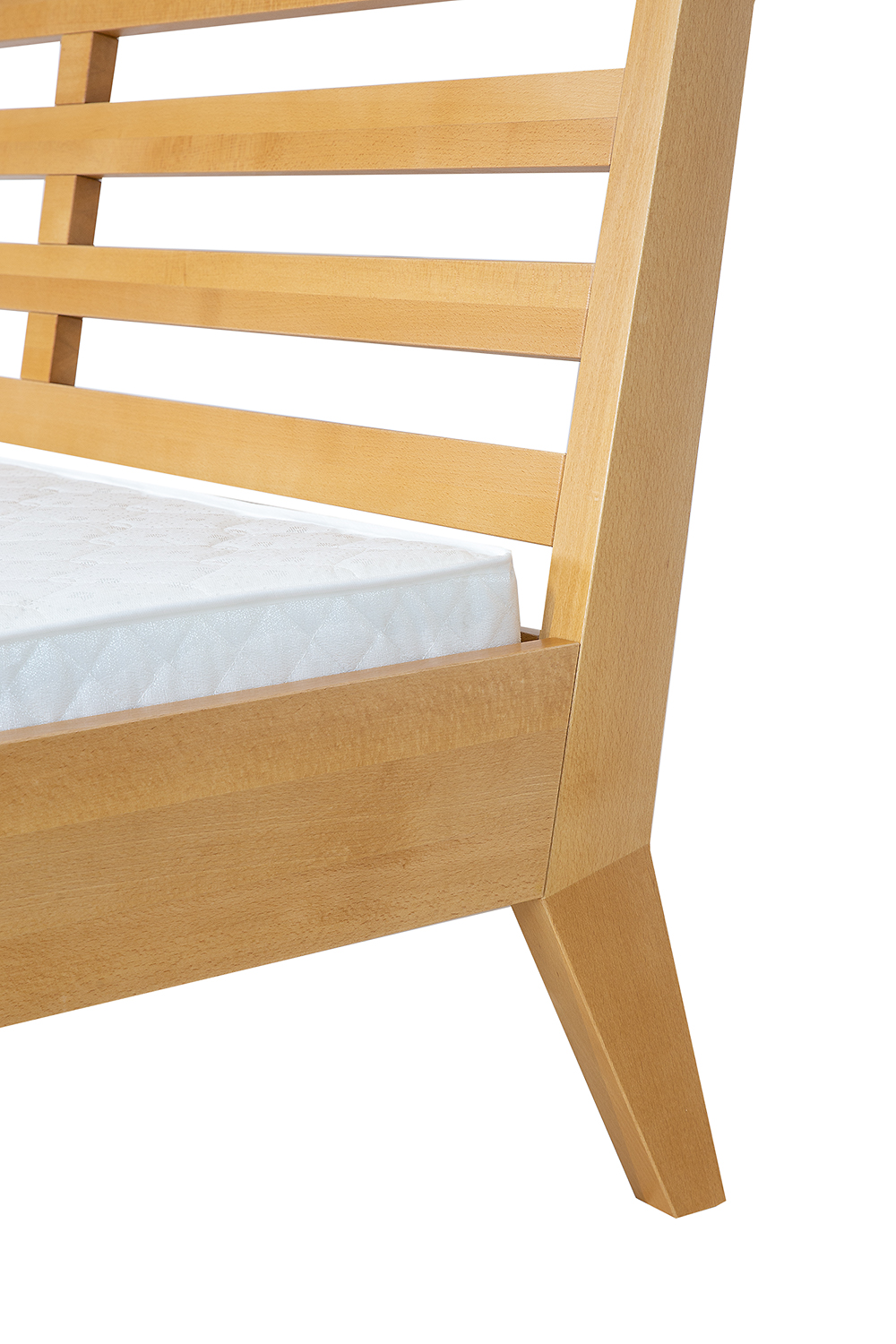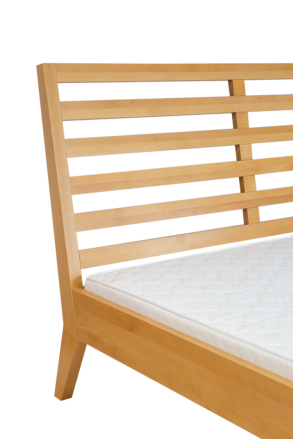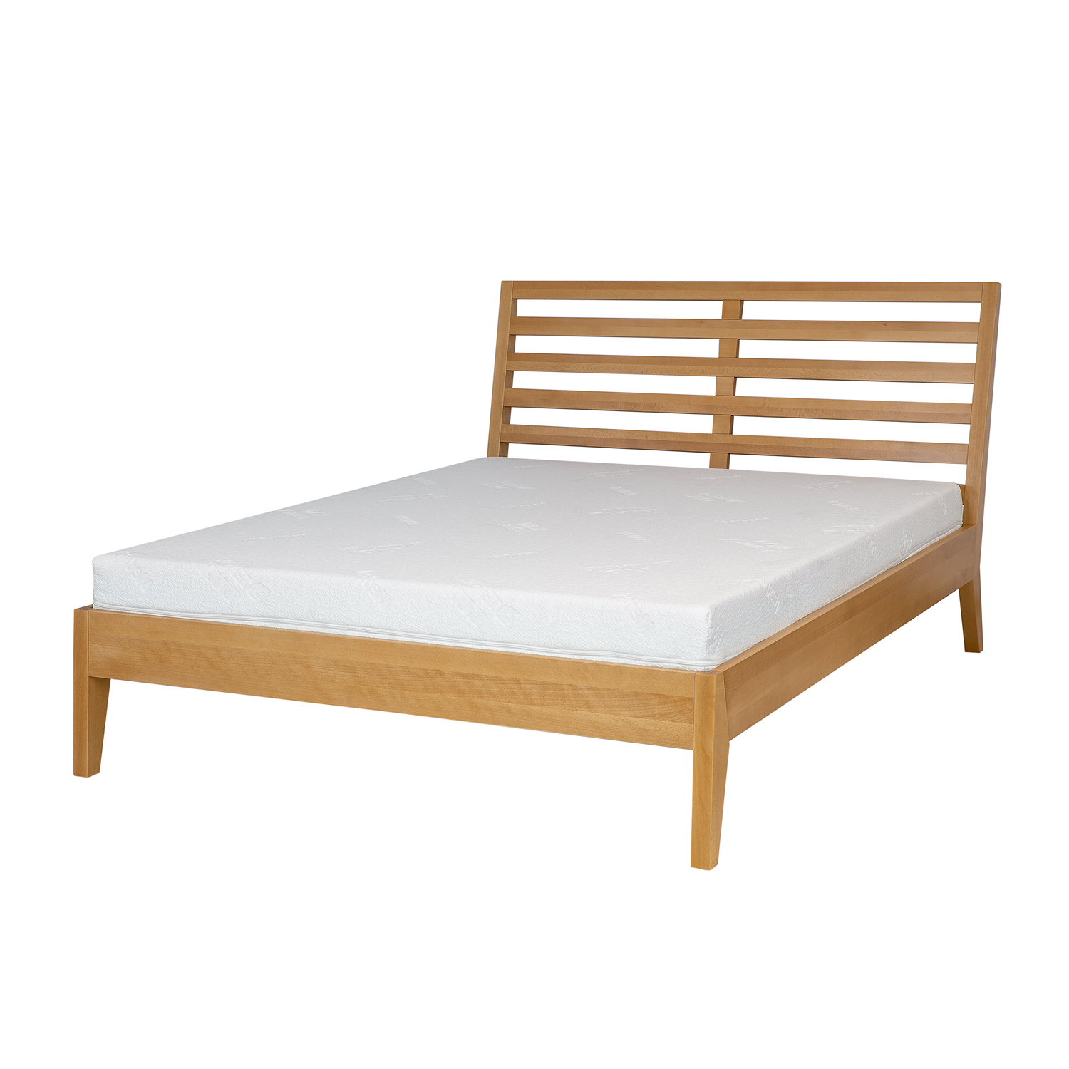 Compare The minimalist and modern LK165 bed is crafted from solid beech wood. The openwork, curved headboard, extending above the bed frame, is perfect for relaxing in the evening with a book or a movie. Similarly, the curved legs at the headboard and the small, decorative front feet lend a lightness to the entire structure and emphasize its unique character. Together, the LK165 bed can become the centerpiece of any bedroom.