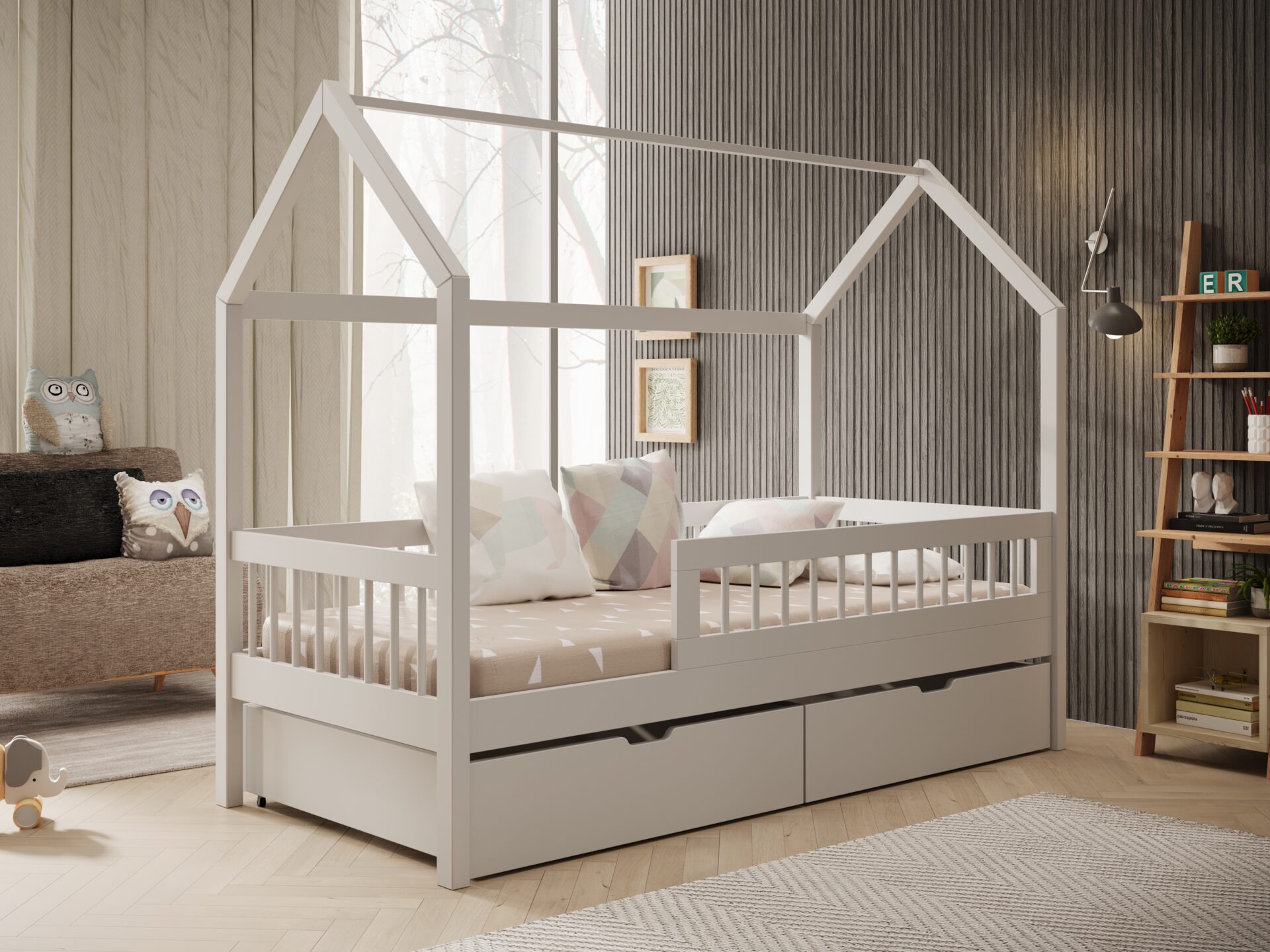 The Galicja house bed is a unique piece of furniture that combines functionality with a design inspired by a cozy, Scandinavian aesthetic. Crafted from solid wood, the bed ensures stability and durability while adding a warm, natural charm to the interior. Its house-shaped design stimulates children’s imagination, creating a cozy place for play and relaxation. It’s an ideal centerpiece for a child’s room, ensuring a comfortable night’s sleep and inspiring creative play. Its simple form and natural finish make the Galicja bed a harmonious addition to any interior, regardless of the style.