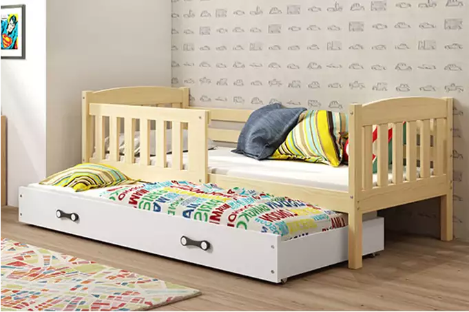 KUBUŚ vaikiška išskleidžiama lova 80×160 su stalčiumi, pušis/balta